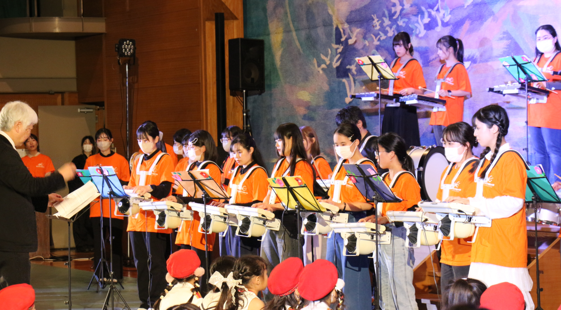 保護者など観客約500人が訪れ、マーチング演奏や、「シンデレラ」の劇、附属幼稚園児の鼓笛、文教おやこ園児のダンス、フライパンをつかった演奏など、みんなで音楽を楽しみました。