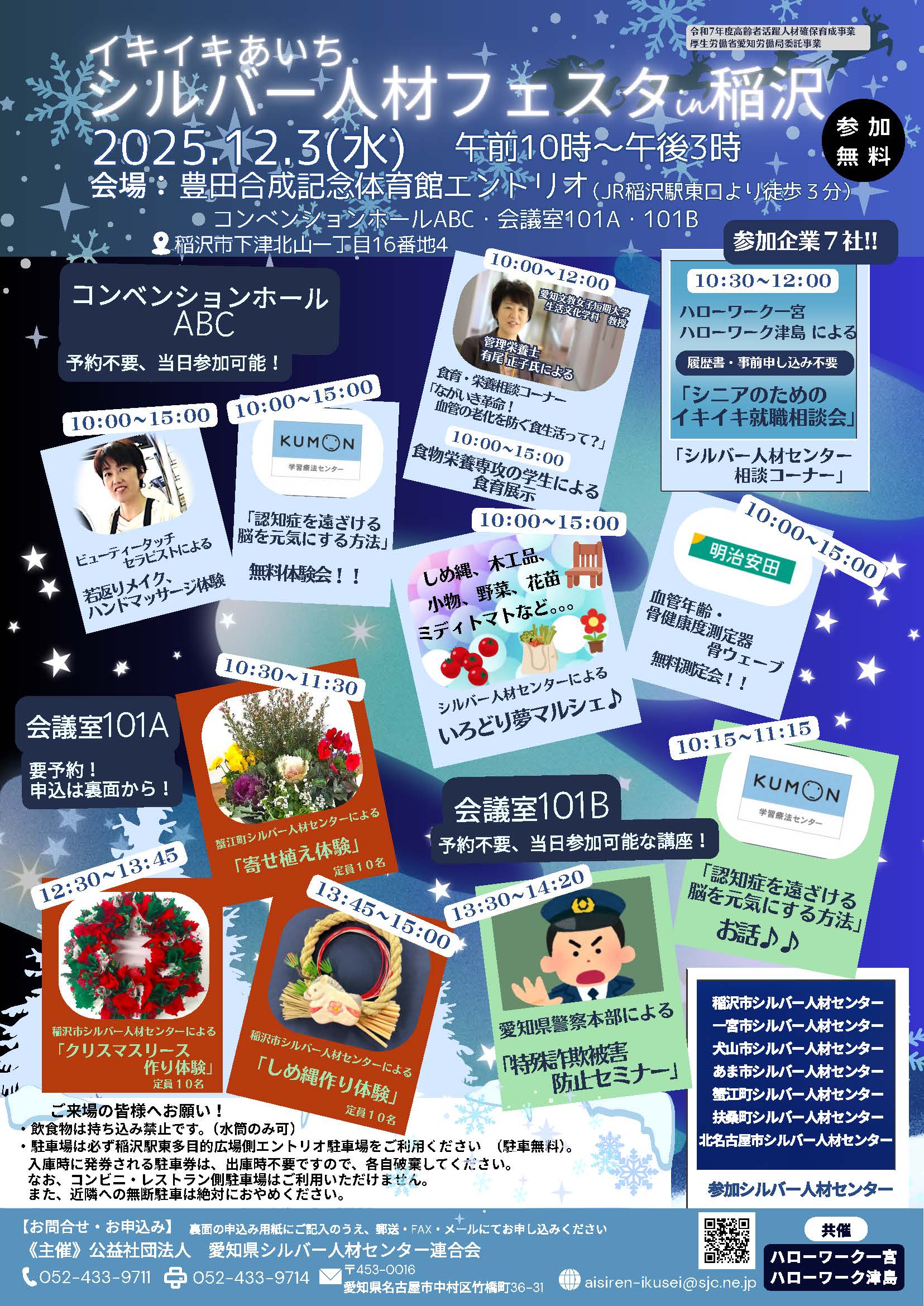 12月3日(水)10時から、豊田合成記念体育館 エントリオで「イキイキあいちシルバー人材フェスタ」が開催されます。