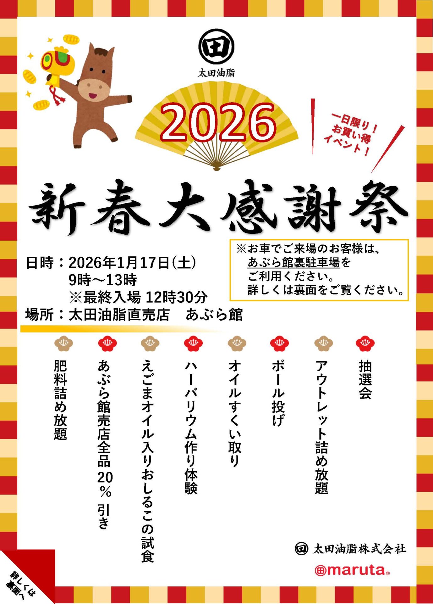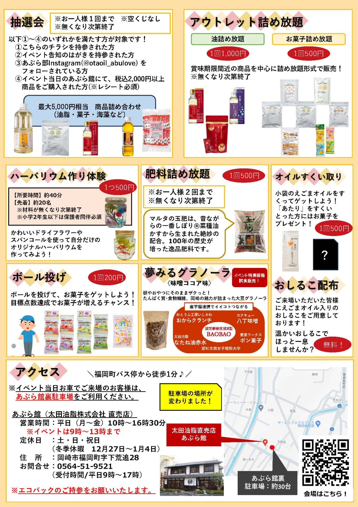 会場:太田油脂株式会社 あぶら館(愛知県岡崎市福岡町字下荒追28)