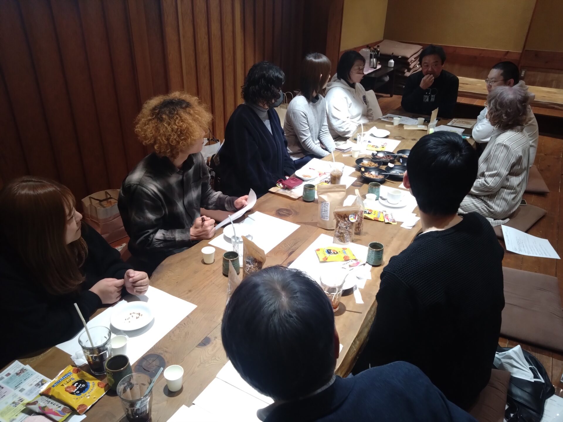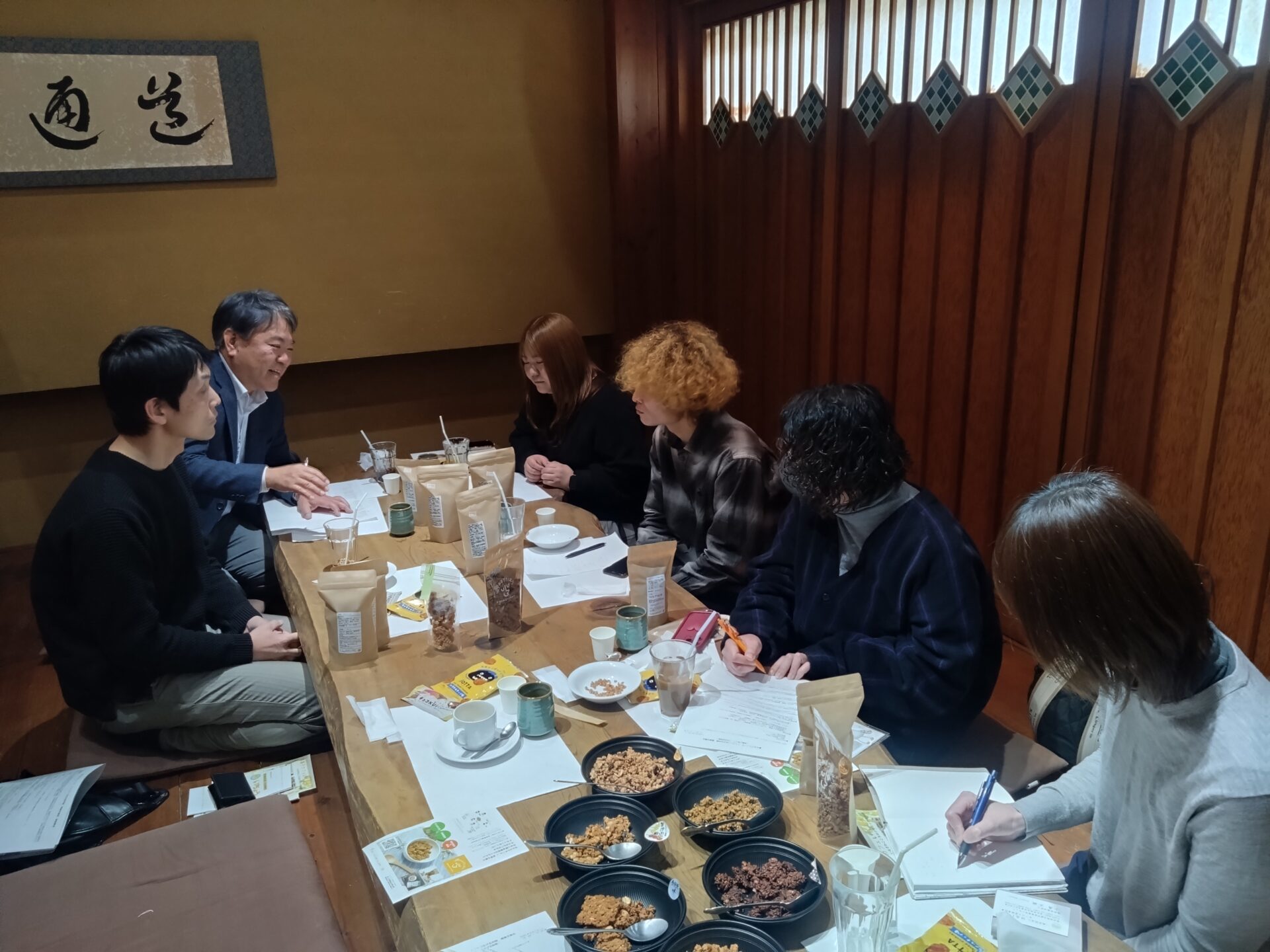 先日、グラノーラの製造や販売に携わるイイコトつながる仲間で、カジュアルな情報交換会を開催しました。日々の製造の中で感じている悩みや工夫を共有し合い、意見交換を行うことで、相互理解を深める貴重な機会となりました。交流を通じて、顔の見える関係が築かれ、お互いの施設を訪問したり、それぞれの商品を販売し合う取り組みも実現しています。