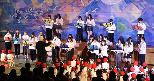 発表当日、多くの子どもたちや保護者、高校生たちが見守る中での演奏は、緊張感に包まれてましたが、学生たちの笑顔を絶やさず、全力のパフォーマンスを披露。音楽に包まれ、観客の皆さんにも大変喜んでいただけました。