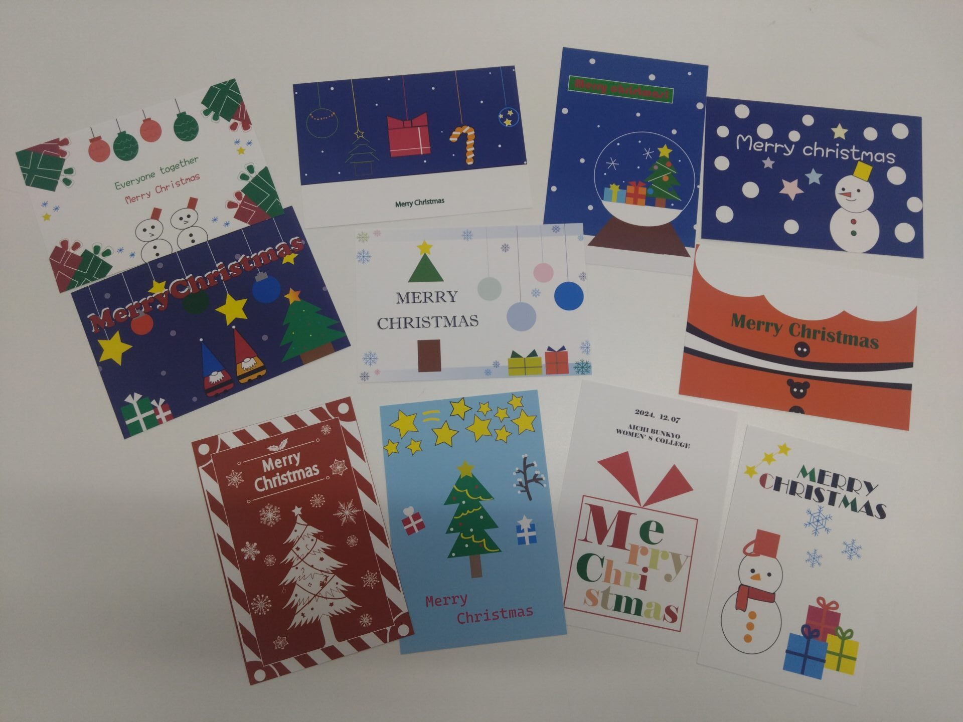 生活文化専攻の1年生が、冬の一大イベントである「みんないっしょのクリスマス」のポスター、ランチョンマット、そしてポストカードの制作にとりくみました。