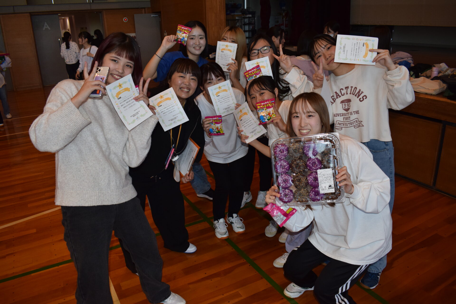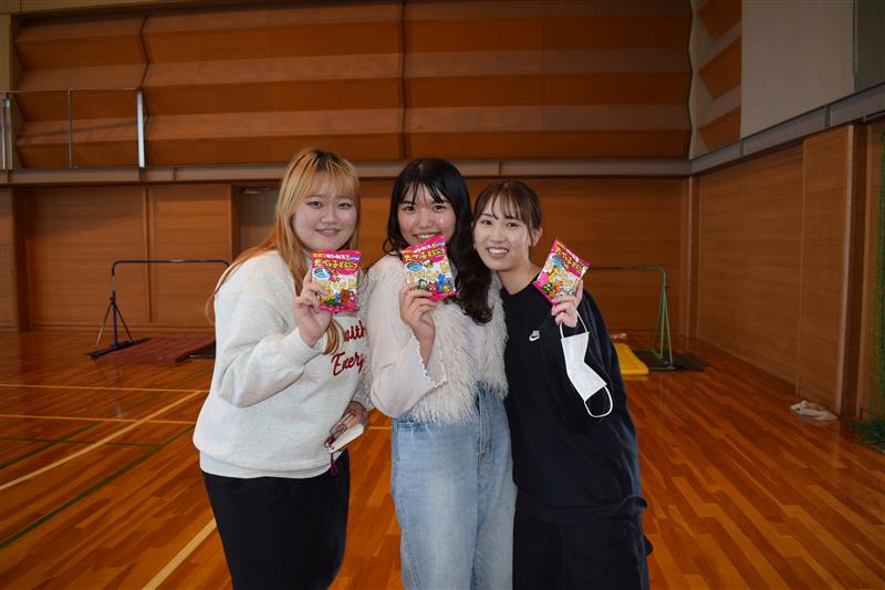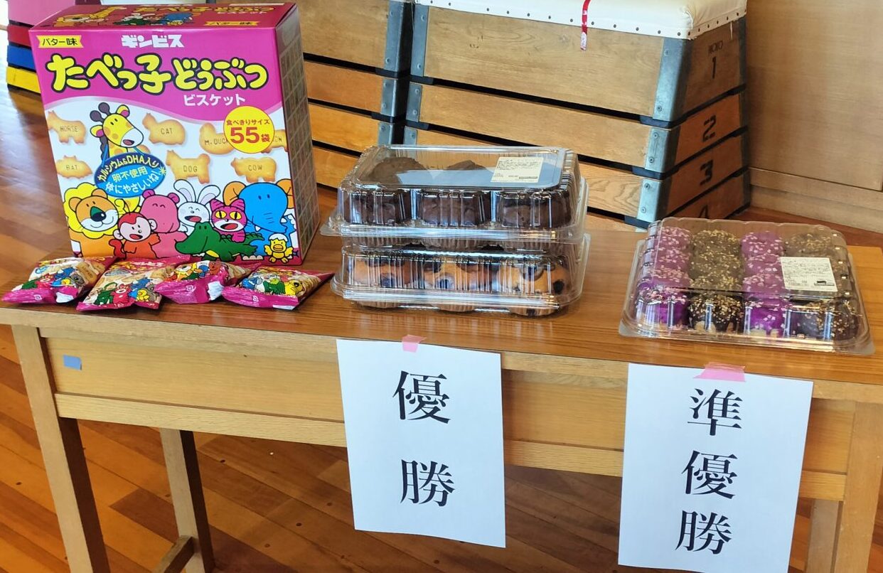 優勝・準優勝のチームには、おいしい景品。参加したチームも健闘賞としてお菓子のご褒美もあり、みんな優勝目指して頑張ります!