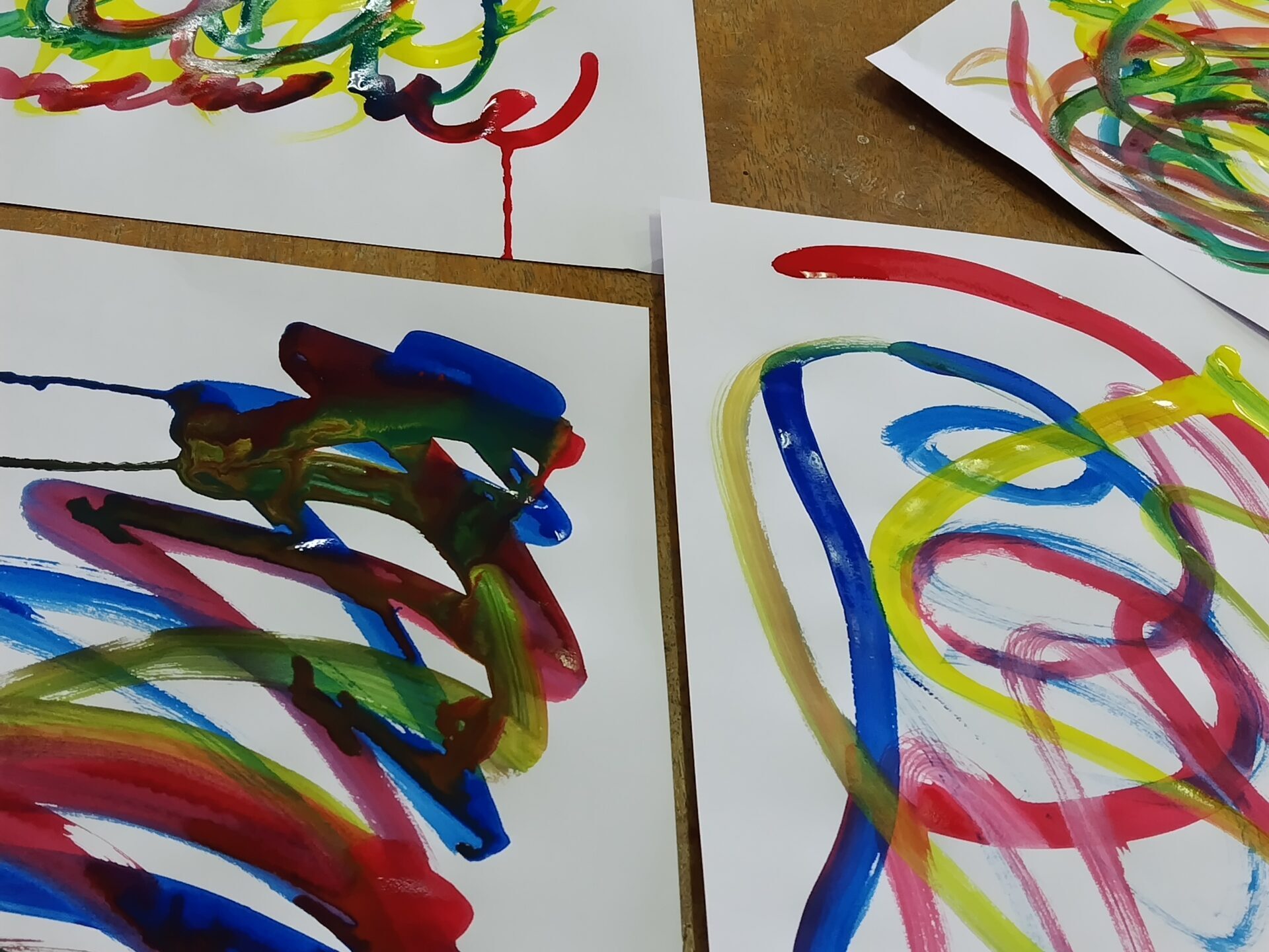 色の変化や混ざり合った時の偶然できた色・新しい発見に出会える楽しい色遊びは、好きなモノを描きながら、きれいな色、好きな色、嫌いな色などを知ることもできます。