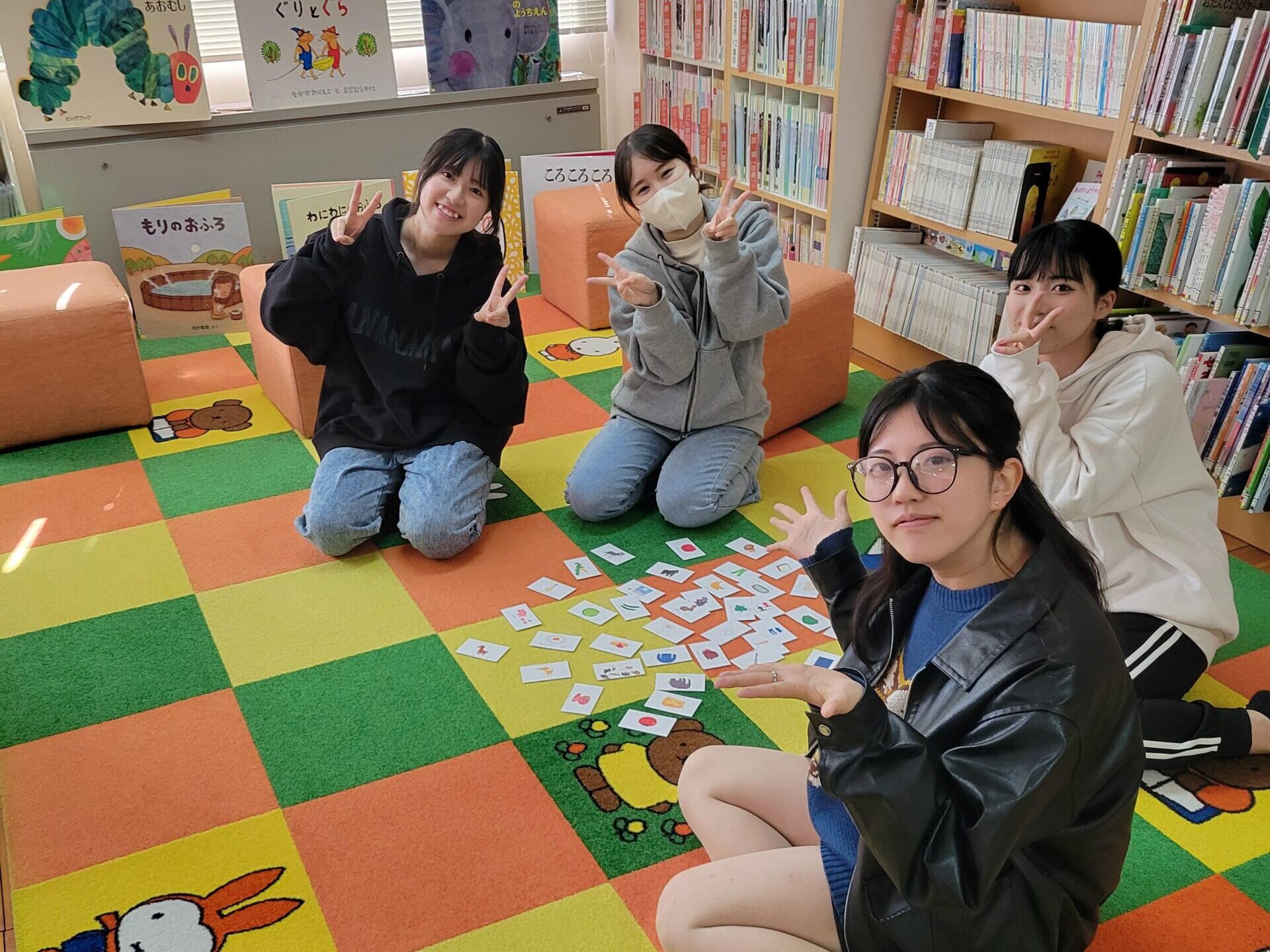 このかるたは、チャレンジ資格試験「幼保英語検定」にも役立つ単語を中心に作られており、楽しみながら自然と保育に関する英語力を強化し、検定対策ができるのがポイント。図書館では、かるたの貸出も行っているので、授業以外の時間にも友達と一緒にチャレンジすることができます。