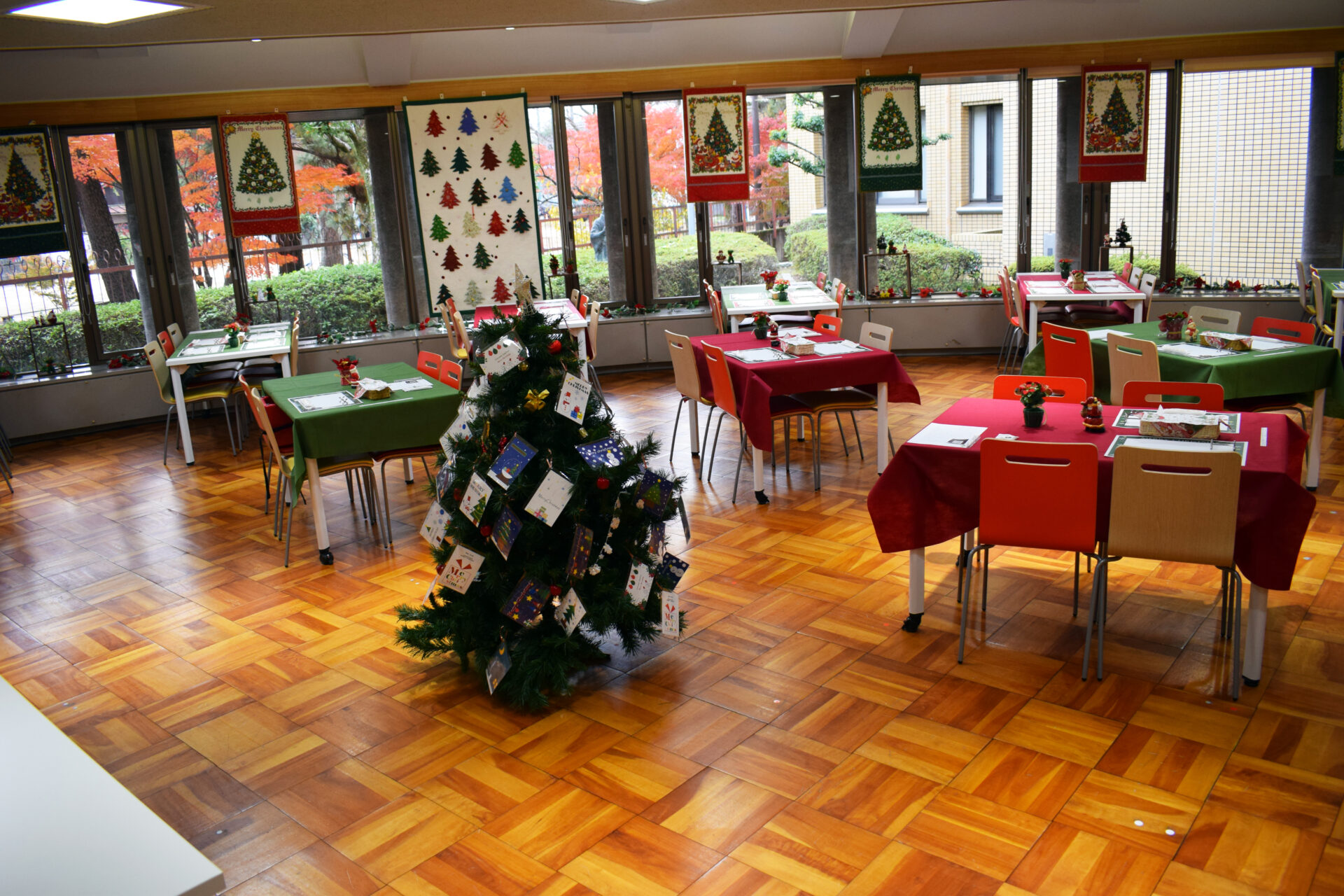 ポスターや、ランチョンマット、ポストカード、プログラムなど、デザインを通じてクリスマスパーティの演出や、受付や動画配信などで、ホスピタリティを実践し、学生たちも達成感を感じることができました。