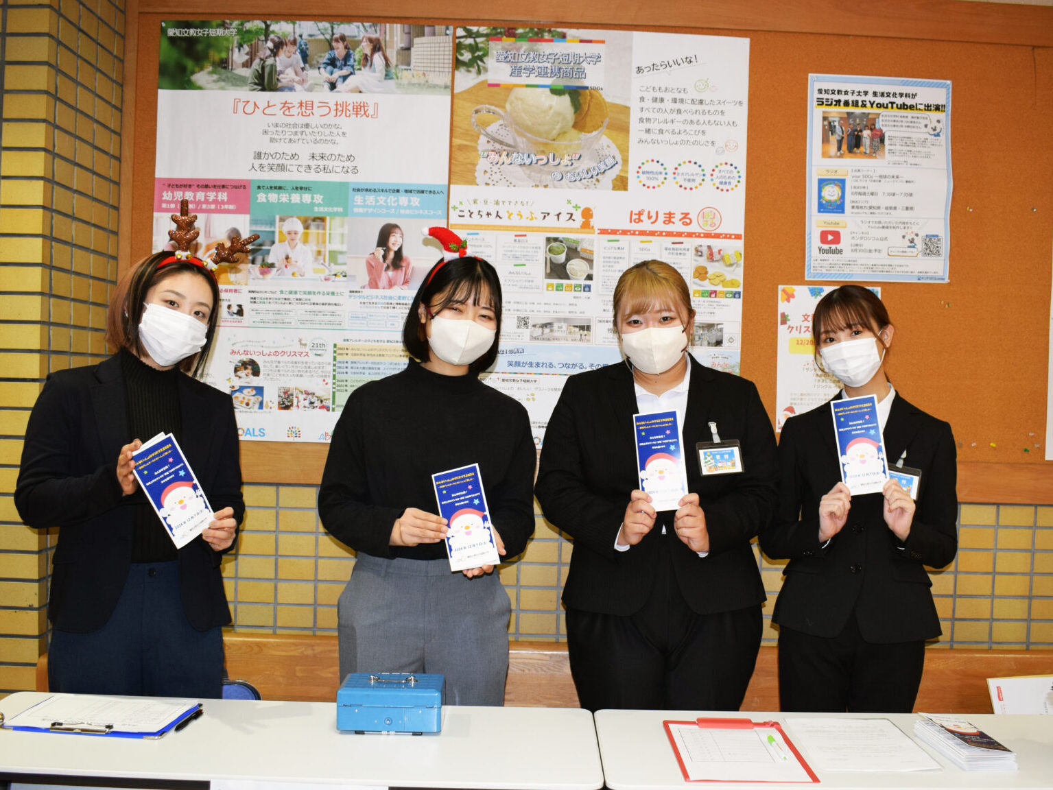 「みんないっしょのクリスマス2024」パーティ当日の生活文化専攻学生たちの活躍を紹介します。生活文化専攻1年生の2人が受付とタブレットの配信を担当しました。