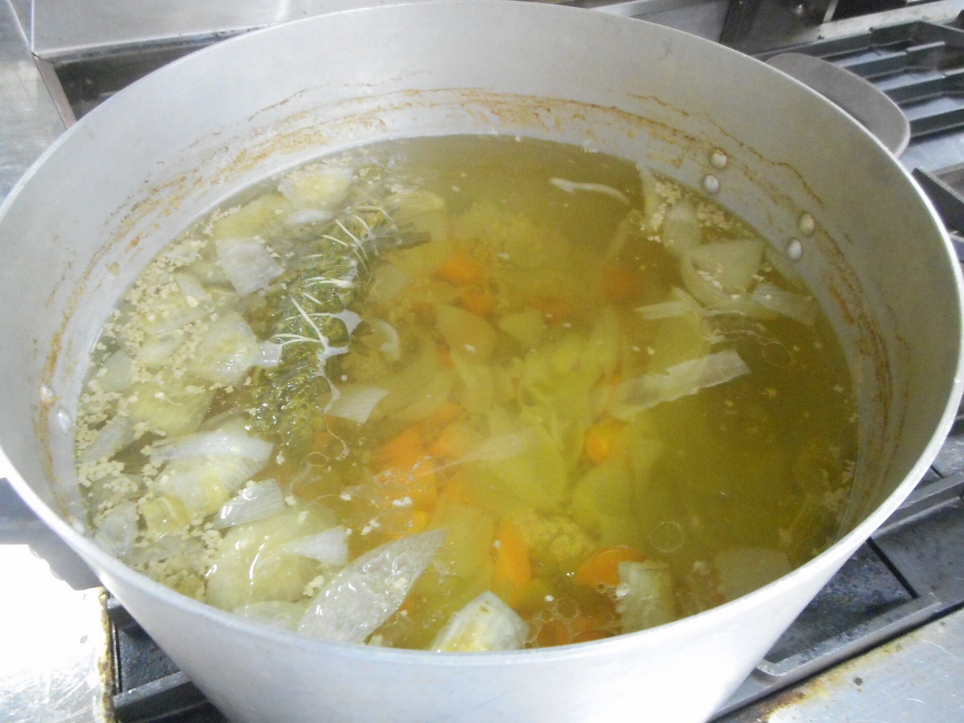 パーティーの前日は、仕込みです。野菜の切裁、調味料計量、すべての料理のベースとなるスープ(フォン)を作り準備を終えました。