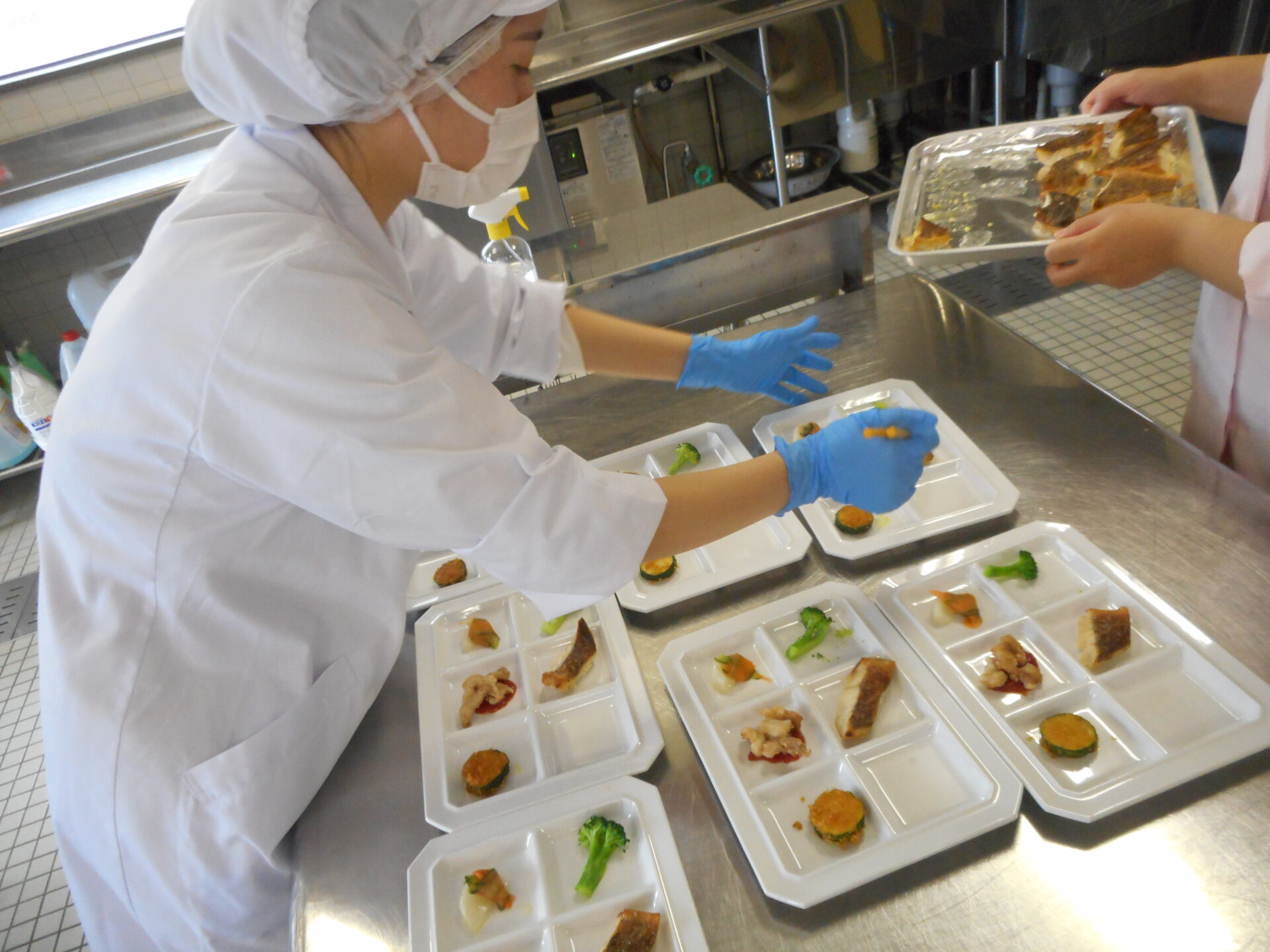 パーティ当日は、8:30から調理を開始。参加者親子の楽しい声が聞こえる中、厨房内では料理の盛付に追われます。