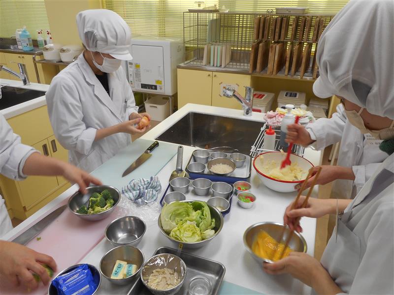 1年生の後期にもなると、調理の手際もよくなり、班のメンバーで声かけをしながら手早く丁寧に調理を進めて行きます。
