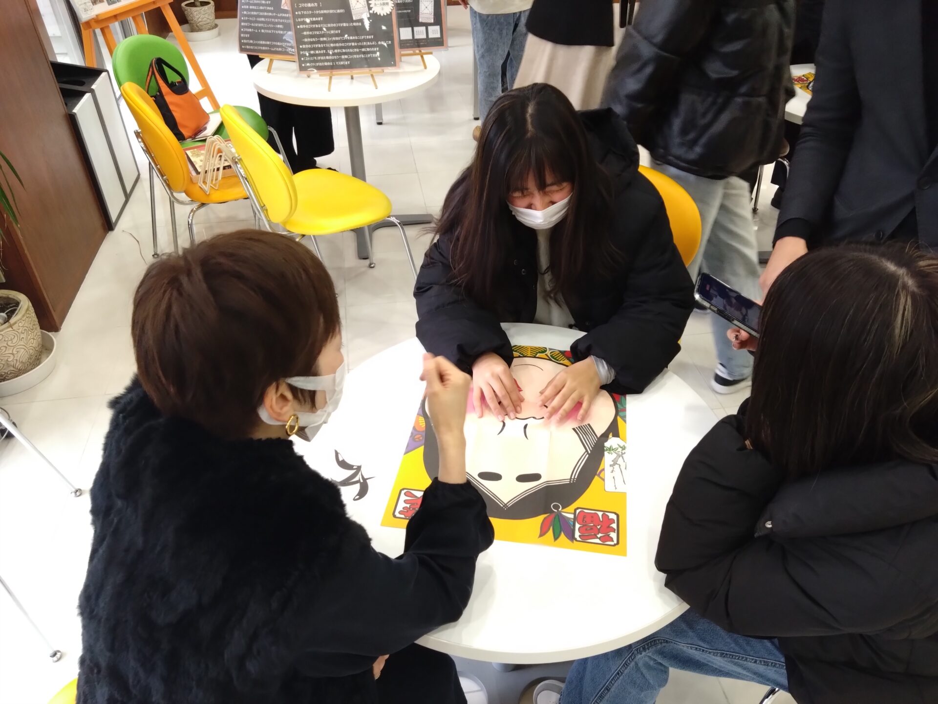今年最初の学生と教職員交流会では、幼児教育の先生が中心となり、「お正月遊び」を企画しました。カルタやすごろく、福笑い、だるま落としといった日本の伝統的な遊びで楽しみました。