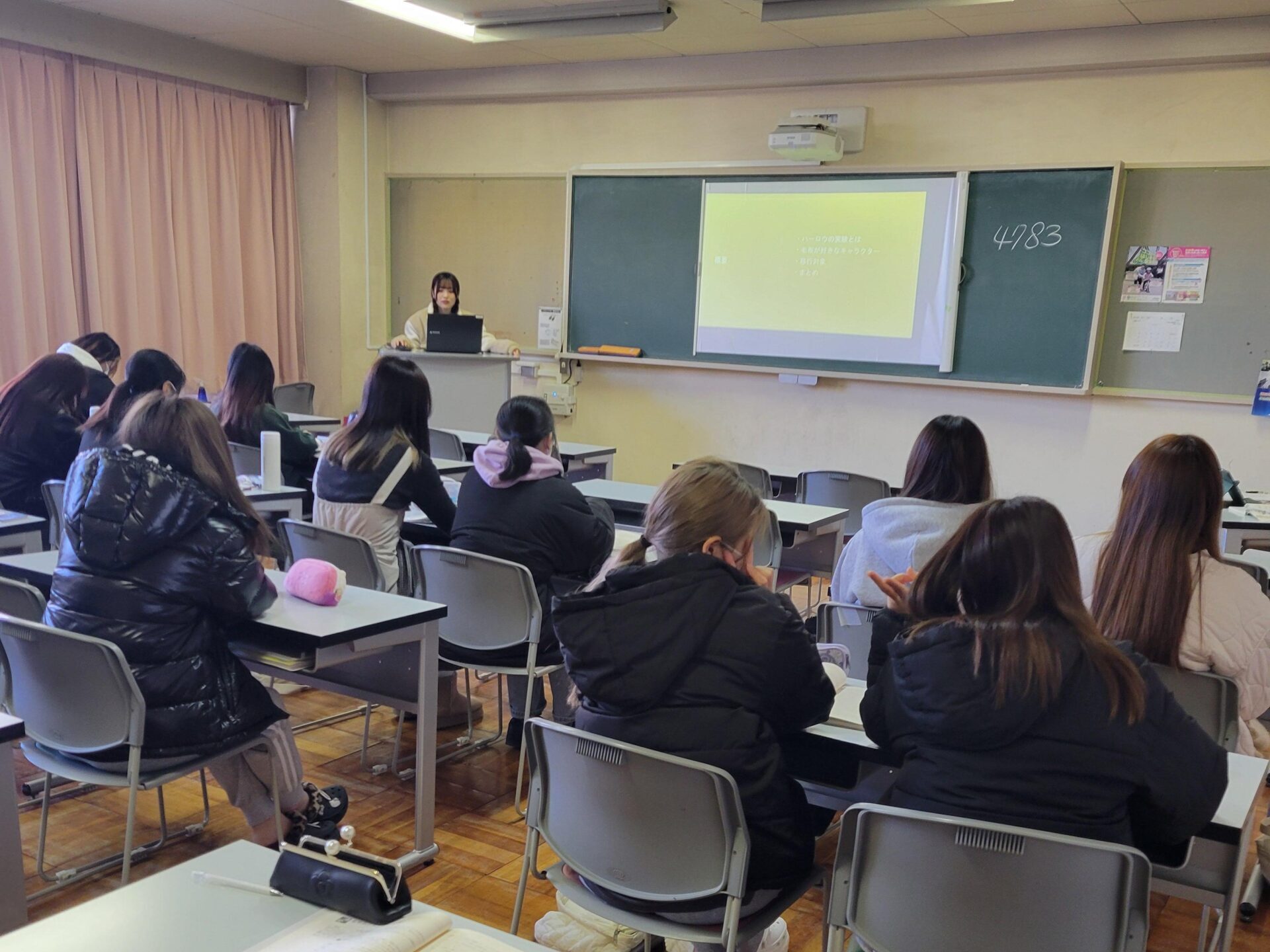 本日の授業のテーマは「なぜ子どもはうそをつくのか?」、「遊びの発達」、「移行対象」、「困った行動について」など、幼児期前期(1~3歳までの時期)について、4名の学生がそれぞれのテーマについて発表し、その後、クラス全員で質疑応答を行いました。
