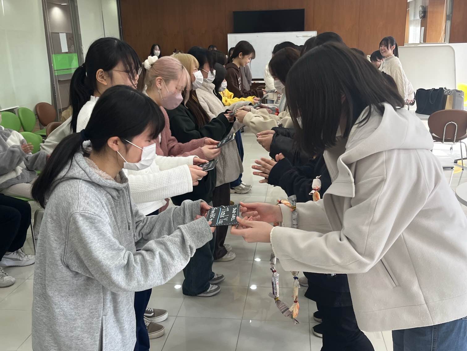 後輩たちからの温かいメッセージカードと手作りのキャンディーレイを卒学年が受け取り、2年間一緒にオープンキャンパスを作り上げてきた仲間との絆や、お互いの成長を見守る喜びが詰まった特別な時間でした。