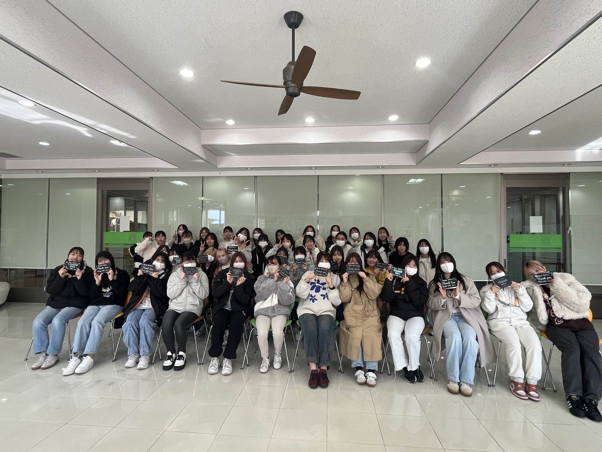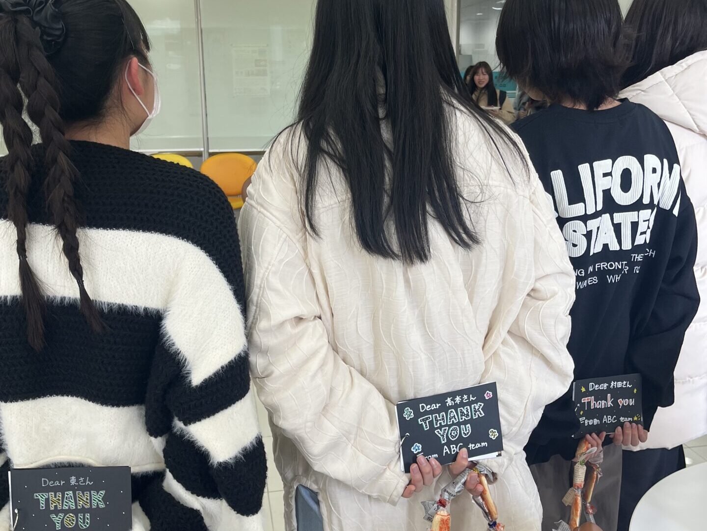 スクールカラーのオレンジTシャツを着て、オープンキャンパスや入学式、卒業式のスタッフとして活動してきた、ABCTeamの卒学年に後輩からサプライズで送別会が行われました。