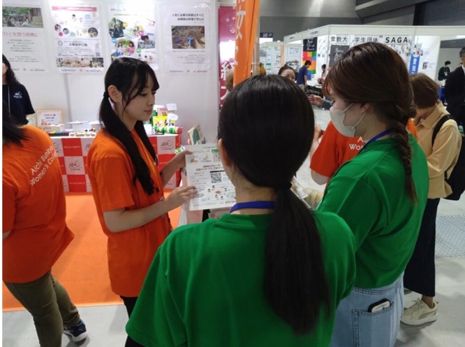 生活文化専攻の1年生が、産学連携で取り組んでいる「大豆グラノーラ稲沢バージョン」の商品開発プロジェクトを紹介。