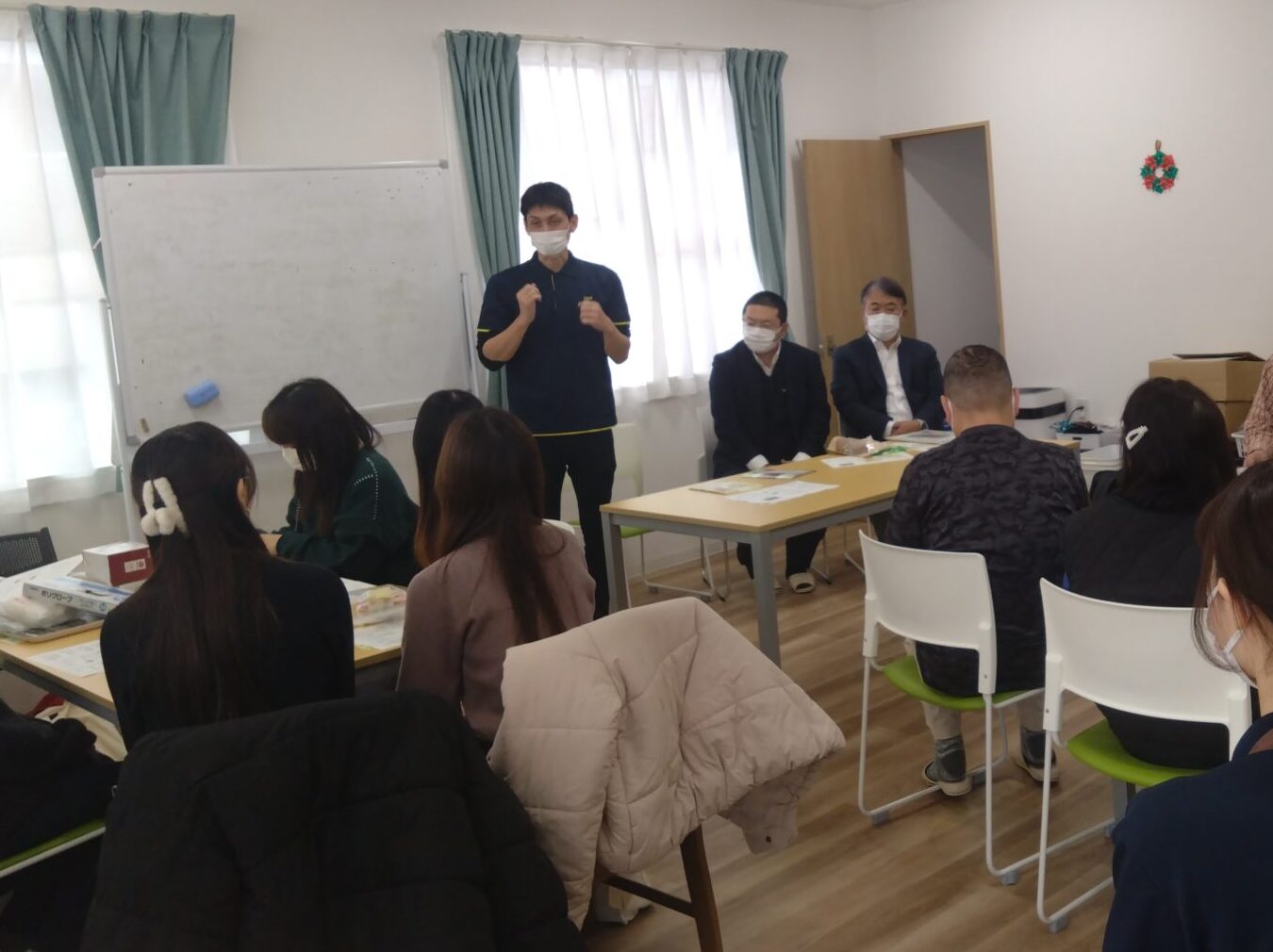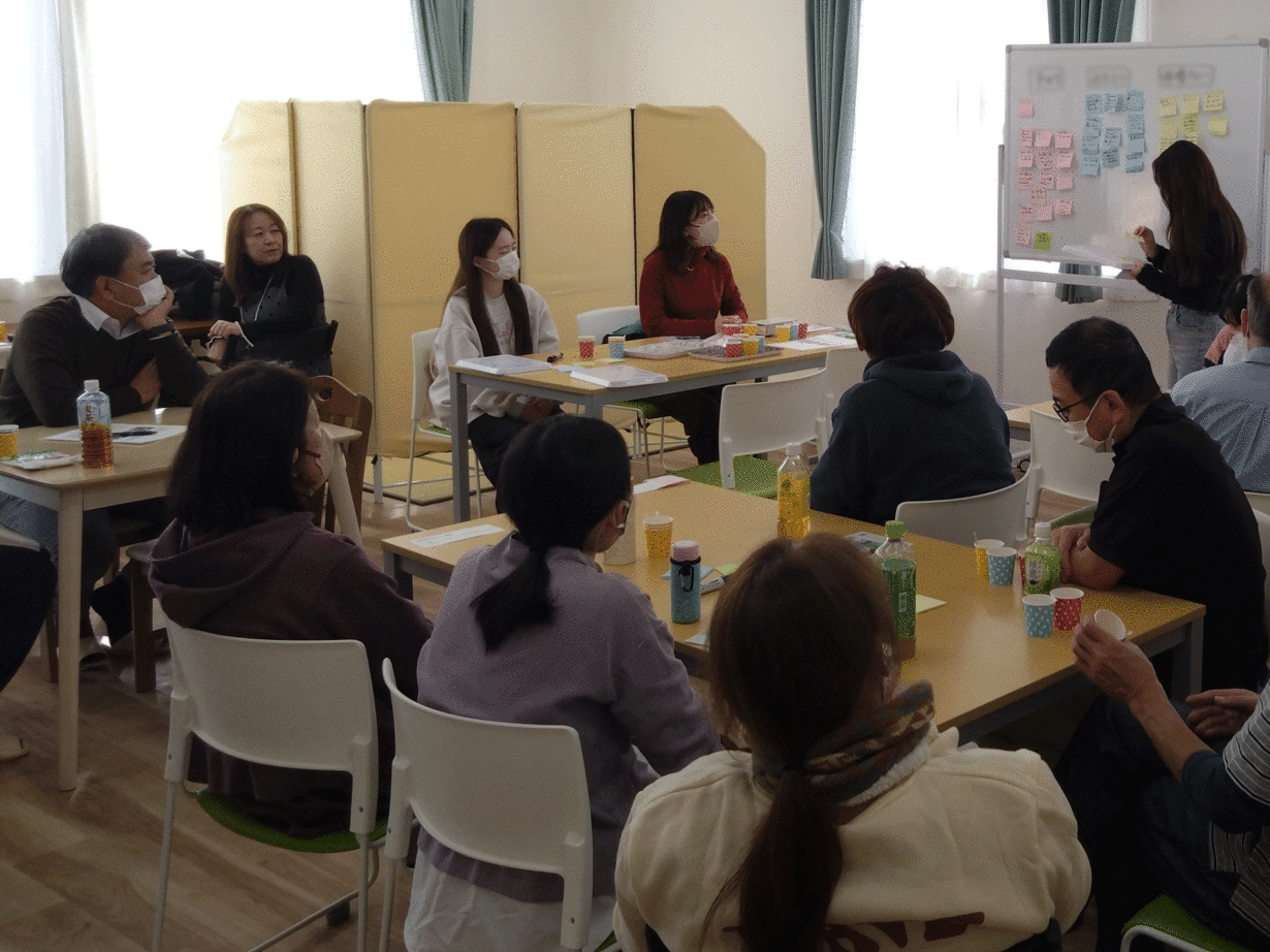 稲沢バージョンの大豆グラノーラは、「就労継続支援B型事業所いちょう」が製造担当となることが決まり、昨年12月に原材料選定のためのブレスト会を行いました。それぞれの業務や理念の説明を行い、大豆グラノーラ稲沢バージョンの商品開発について共有した後、大豆グラノーラベーシックバージョンを試食し、何を入れたらいいのか、どんな味にしたいかを、付箋をつかって意見を出し合いました。