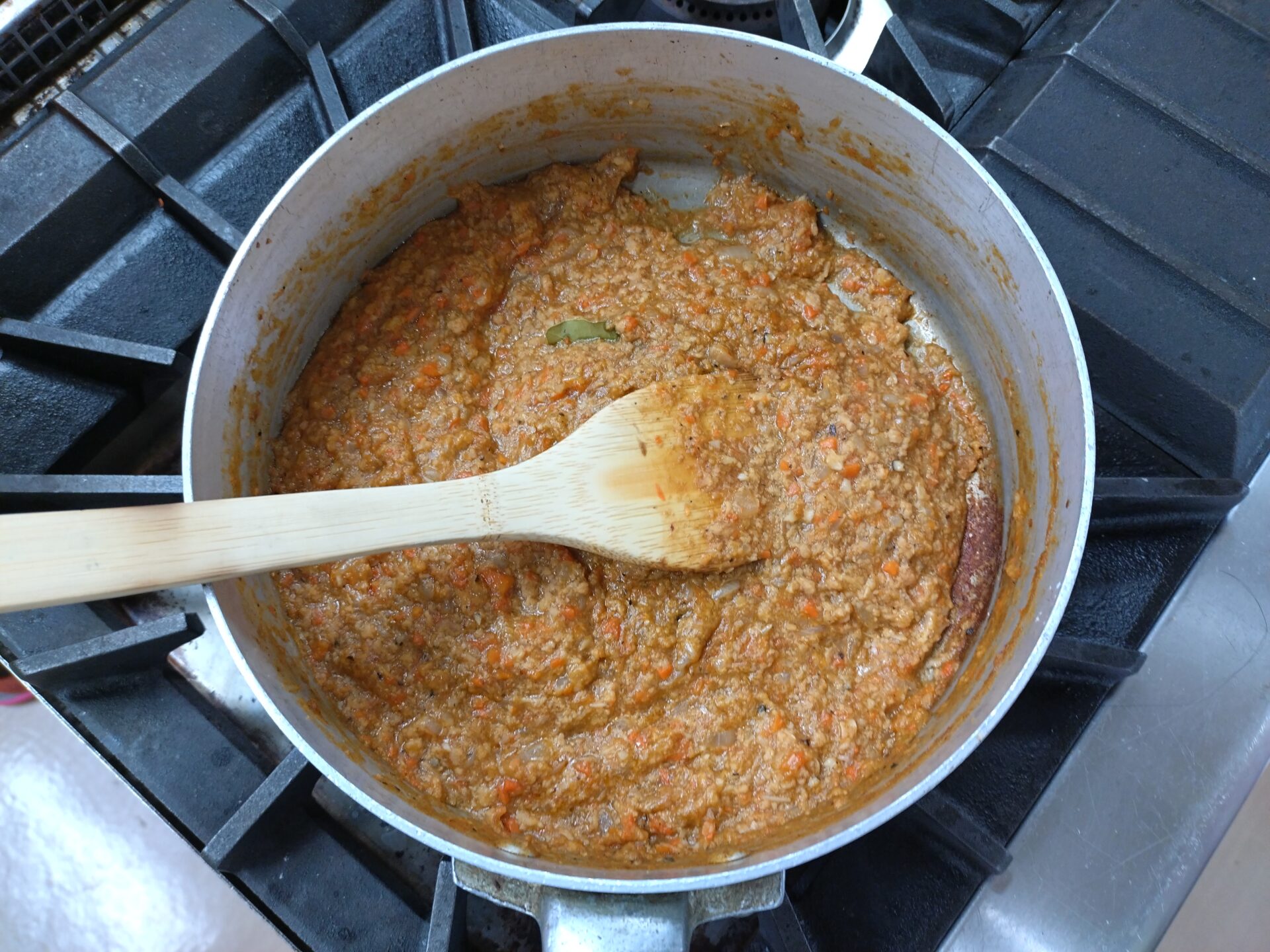 食物アレルギー対応食の調理実習では、山口先生が講師を務められました。実習内容は、「鮭の中骨缶カレー、コールスローサラダ、高野豆腐の野菜炒め、米粉のクッキー」です。食物アレルギーのある子どもの多くは、食事に制限があるため、必要な栄養素が不足しがちです。そのため、今回の料理には、カルシウムを多く含む鮭の中骨缶や高野豆腐が活用されています。また、コールスローサラダのドレッシングには豆乳の濃度を活用し、通常のマヨネーズソースと遜色ない遜色ない出来映えでした。