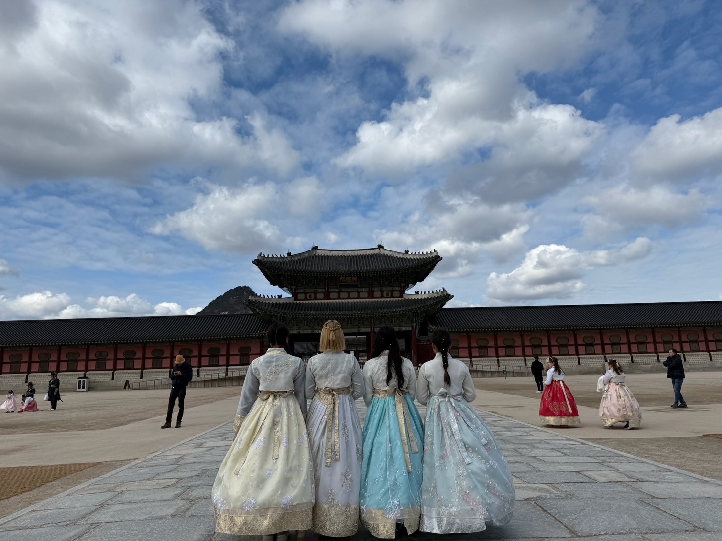 初日は、9時5分発の飛行機でソウルへ向かいました。到着後、最初の食事は本場のビビンバ!日本の味付けとは異なる本格的な味に、学生たちは感動していました。その後、国立民俗博物館や南大門、HiKR GROUNDを訪れ、韓国の歴史や現代文化に触れました。