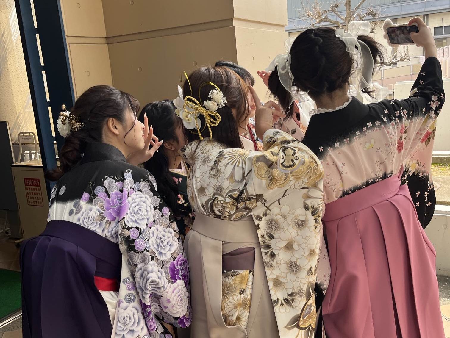 式典終了後は、卒業生の皆さんが笑顔で記念写真を撮り合う姿が印象的でした。
