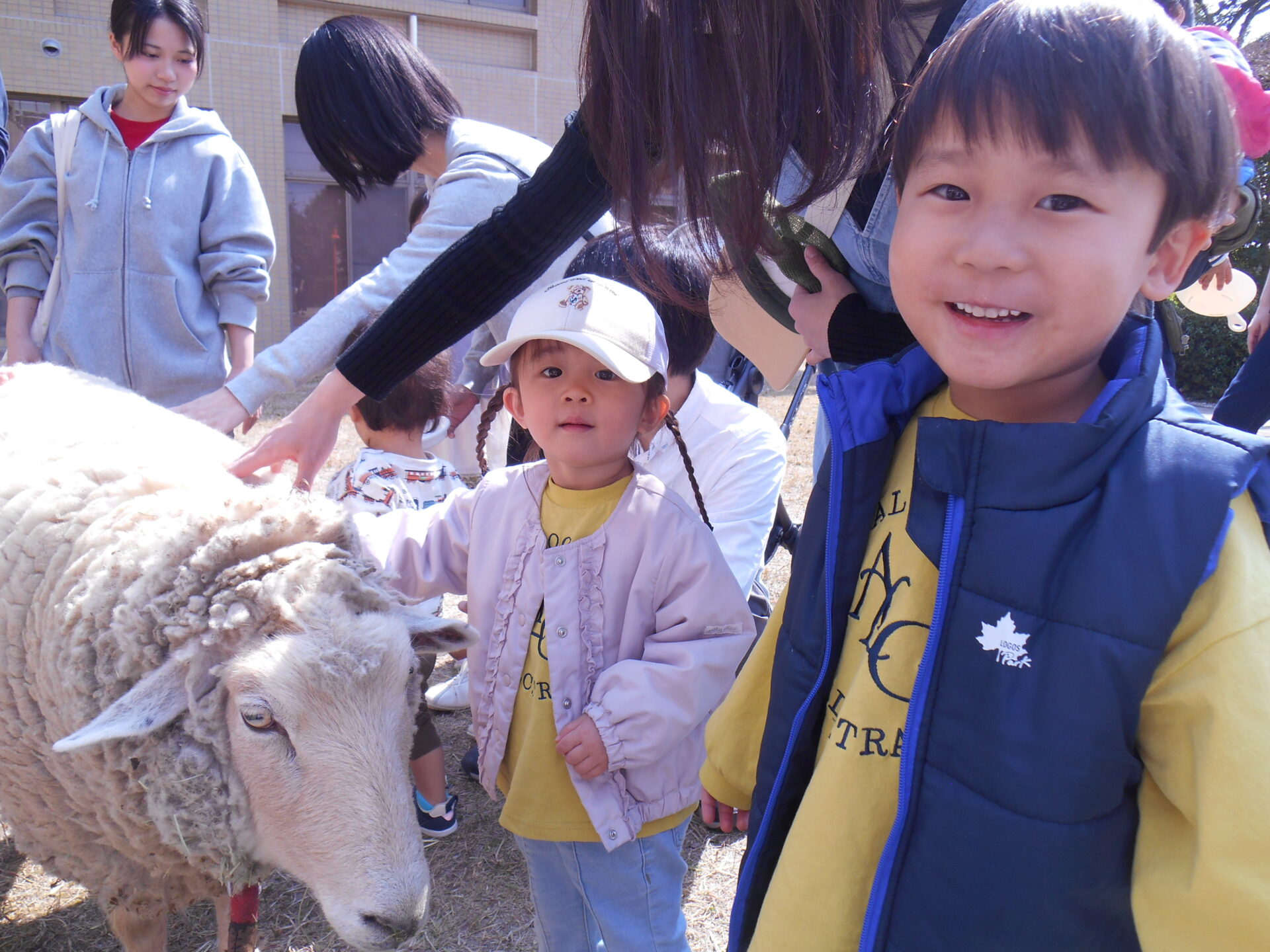 3月22日、お天気に恵まれた中、本学の中庭で「ふれあい羊ひろば」が開催され、文教おやこ園の子どもたちが参加し、かわいい羊たちとのふれあいを楽しみました。