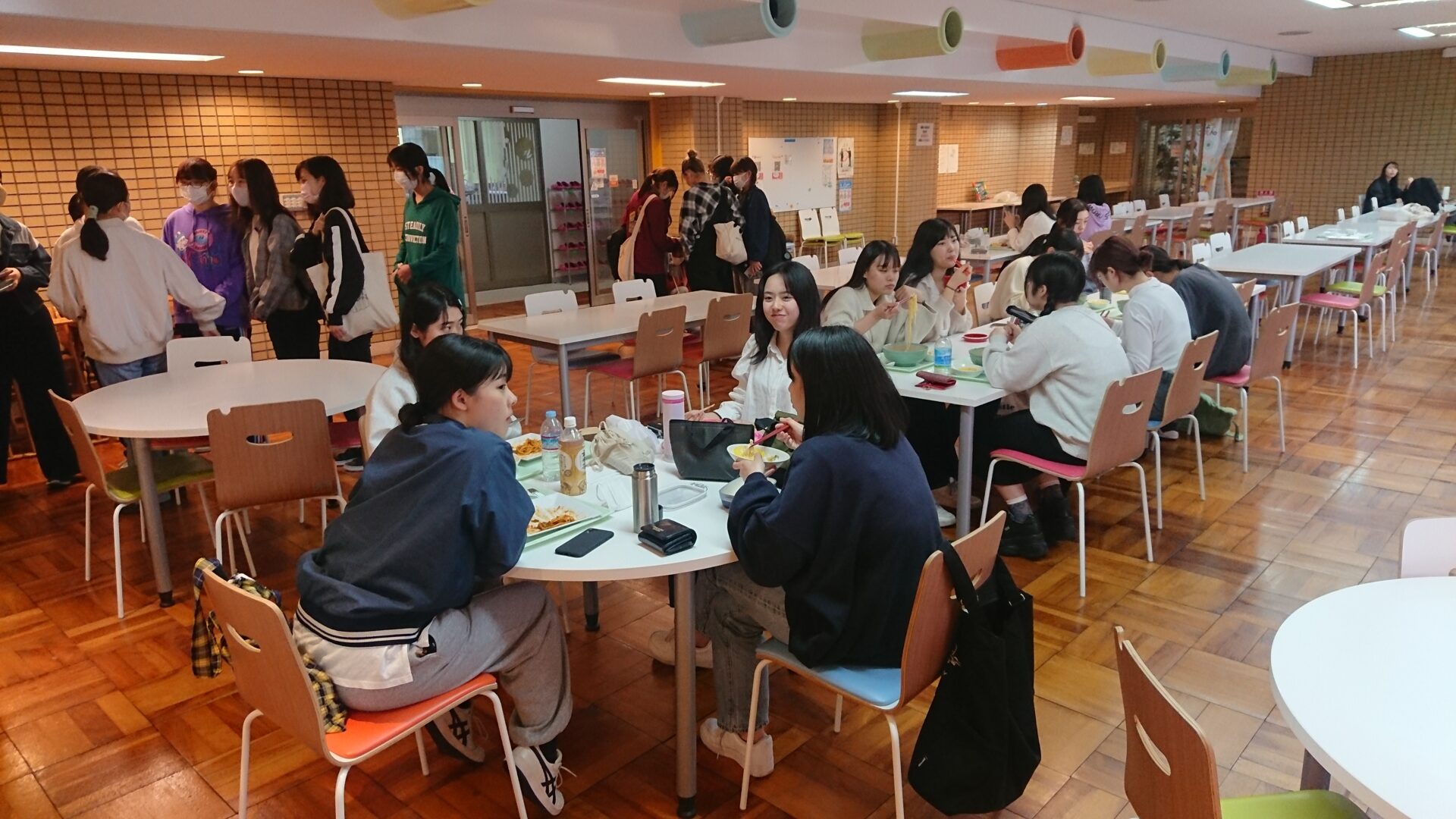 ランチタイムも楽しみな時間ですよね。みんなで囲む食事の時間は、栄養だけではなく幸せも運んでくれます。家からお弁当を持って来たり、コンビニで買ったり、学食を利用したり、学生のお昼ごはんはさまざまです。本学の学食(文教レストラン)では、生活文化学科食物栄養専攻の教員考案のレシピなど、「食育」を実践する健康的で美味しいランチを提供しています。ランチは、お惣菜なども選べるサラダバー付きで、お野菜もしっかりとることができます。