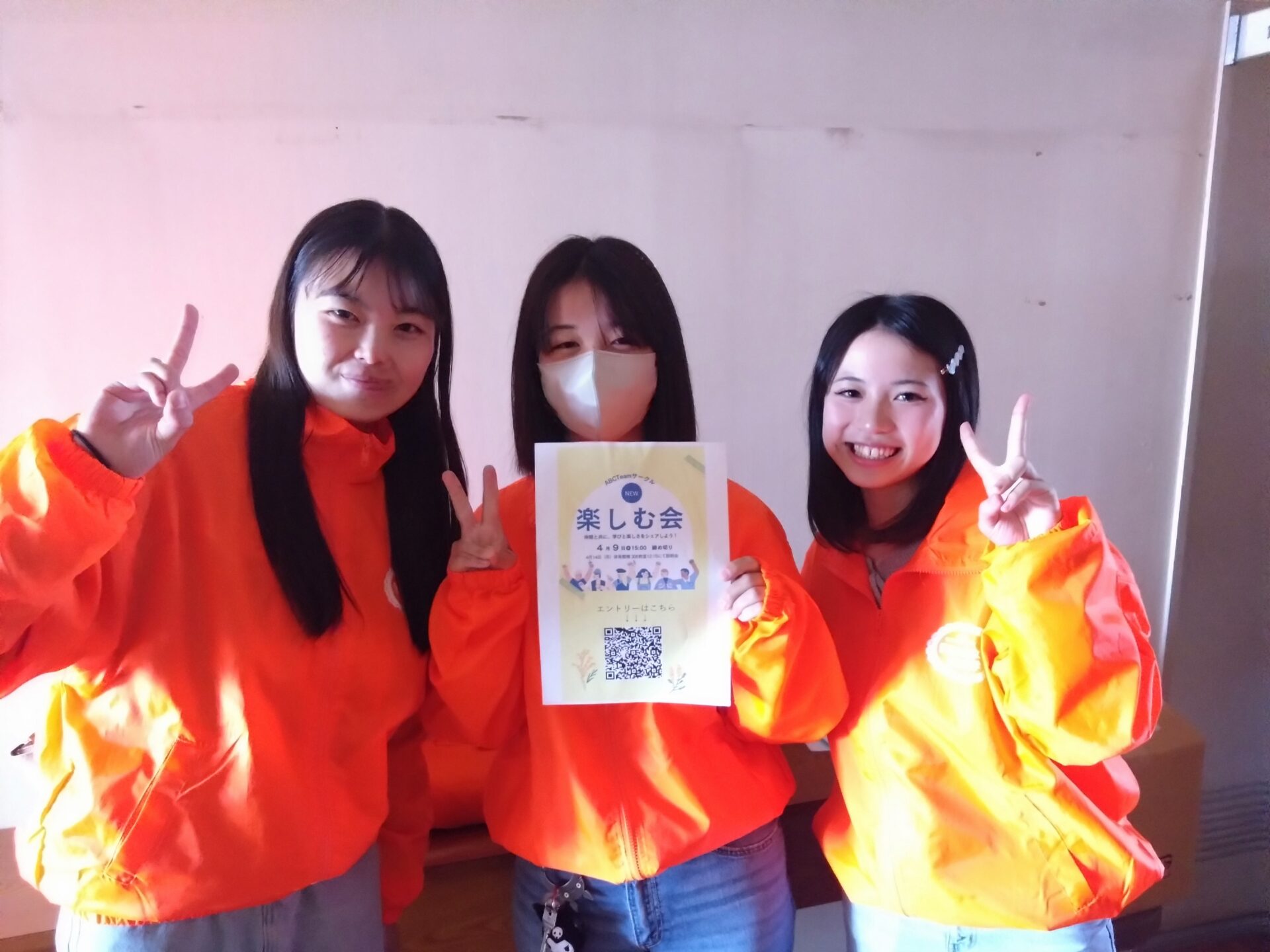 そして、オープンキャンパスを盛り上げてくれた、ABCチームは、「楽しむ会」というサークル活動として、学年を超えて、学生生活を楽しもう!と呼びかけました。