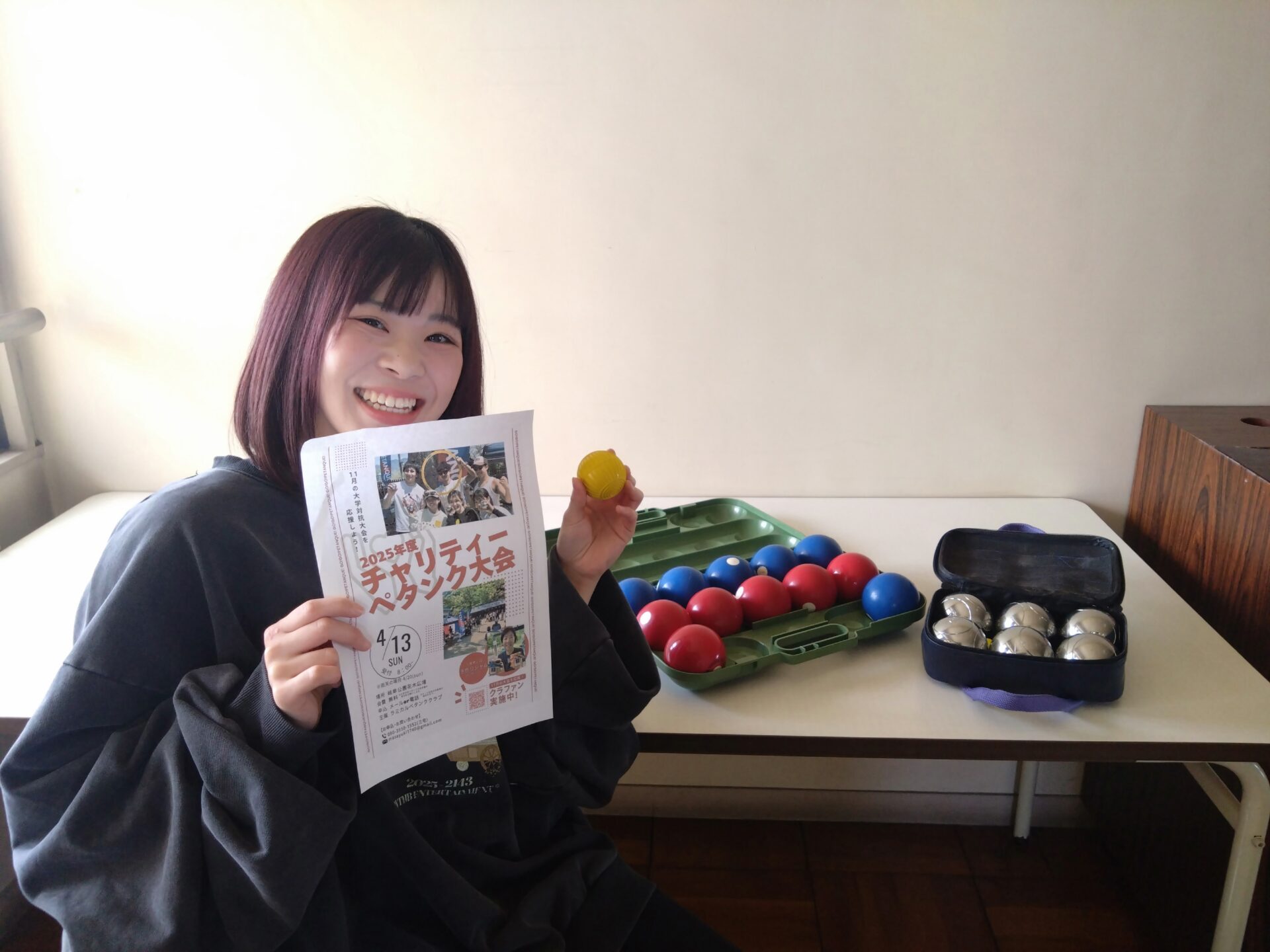 サークル紹介からは、ペタンクサークルが大会エントリーの紹介。昨年は惜しくも3位。今年は優勝目指してます!興味のある方は、岡田先生までお声がけください!