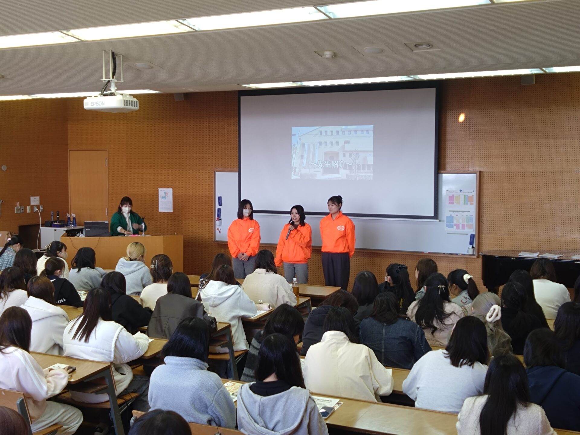 新たなスタートに少し緊張した面持ちの新入生や在学生のオリエンテーションの中で、ABCチームや各サークルの紹介などが行われ、「一緒に学生生活を楽しもう!」と呼びかけました。