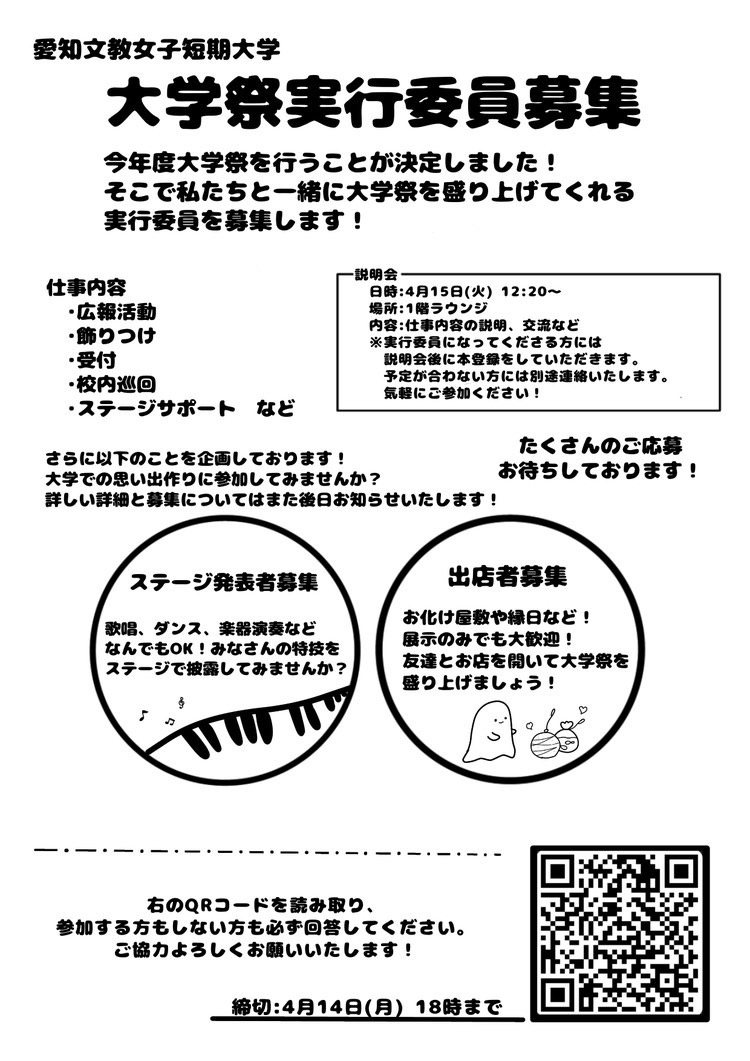 大学祭実行委員の募集のフォームはこちらから! ▶▶大学祭実行委員メンバー募集フォーム 参加するしないにかかわらず、回答をお願いします!