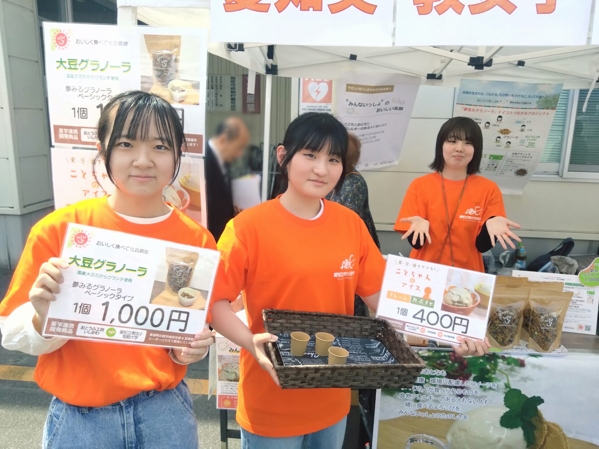 今回のイベントでは、「みんないっしょ」をテーマに進めてきた産学協働の取り組みから生まれたオリジナル商品「ことちゃんのアイス」と「大豆グラノーラ」を販売しました!