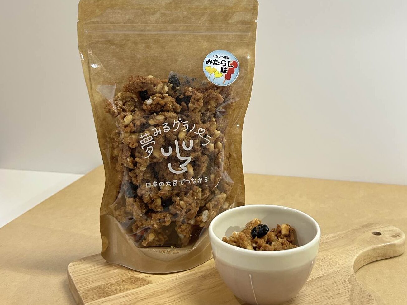 「大豆グラノーラ みたらし味」は、洋菓子カフェいちょう、いちょうでの朝市で販売中です。1袋180g・1,000円、特定原材料8品目不使用(※同工場内で小麦・卵・乳を含む製品も製造)。たんぱく質と食物繊維がしっかり摂れる、やさしい和風の味わいをぜひお試しください。“おいしく食べて社会貢献”、あなたもその一歩を踏み出してみませんか?