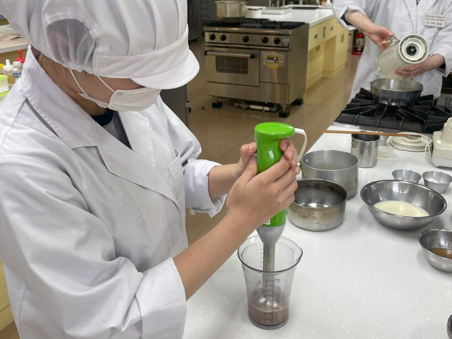また、市販のゲル化剤を頼らず、片栗粉を使ってとろみをつける方法も学びました。今回は「ねぎとじゃがいもの呉汁」を作り、とろみのつけ方や食感の違いを体験しました。