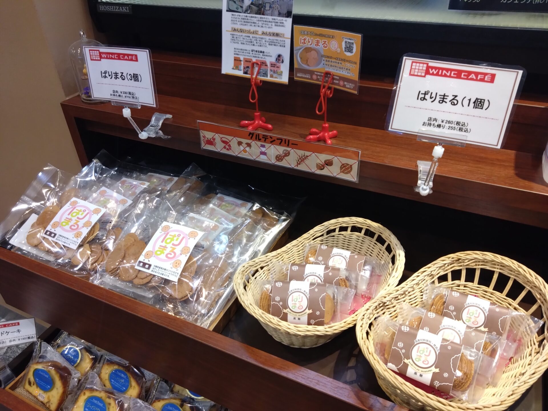 名古屋駅すぐ、ウィンクあいち1階にある【ウィンクカフェ】のお菓子コーナーにて、産学連携開発商品『ぱりまる』の販売が始まりました!
