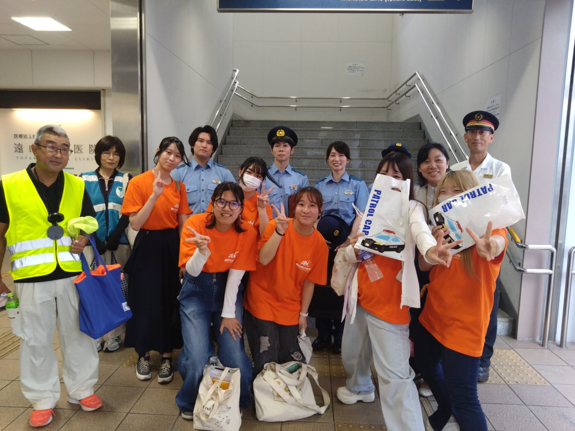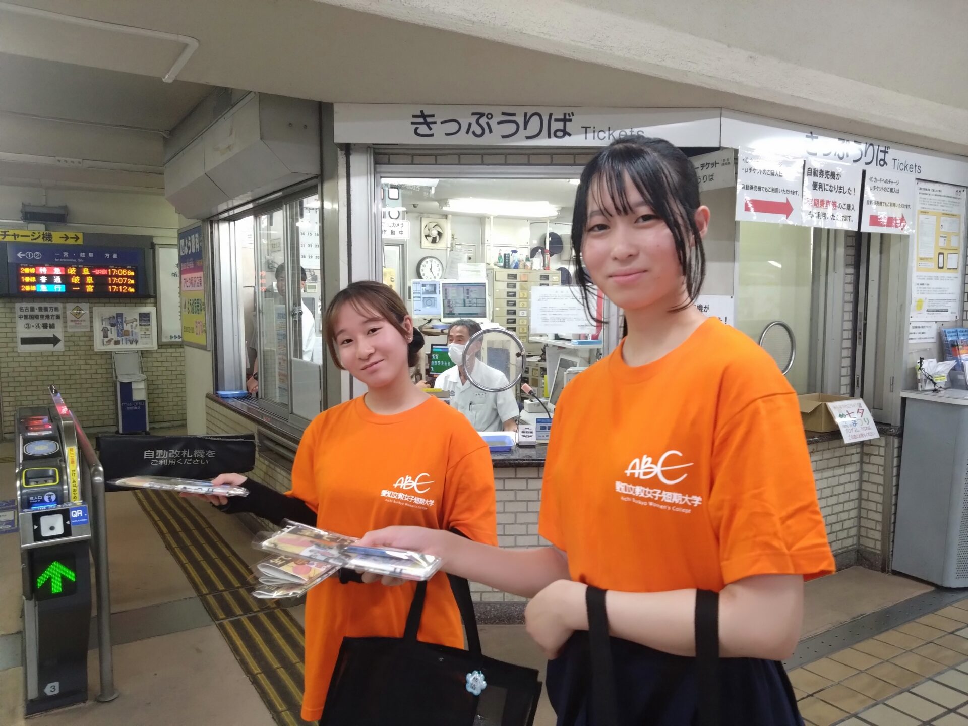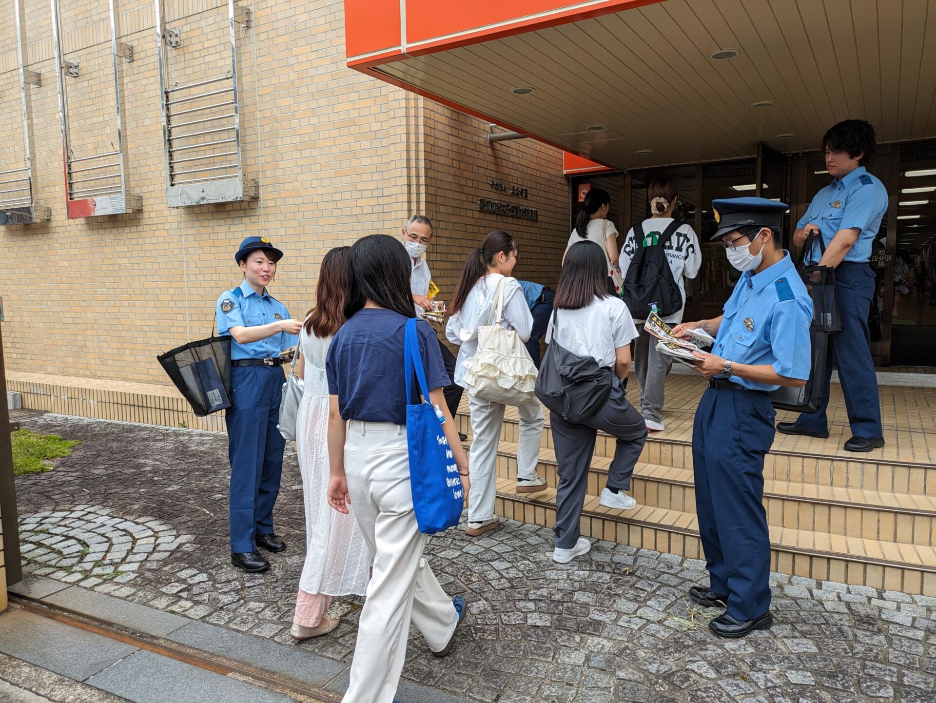 一部の学生様を除き、皆様初めての防犯活動でしたが、比較的、スムーズに声掛けから啓発品の配布までをこなされていました。一方で活動中、学生の声掛けや受取りを拒まれる場面を何度も拝見しました。しかし、皆様はそのようなことを全く気に留めない様子で、次の利用者へと活動を続けられました。そんな学生様の様子を見て、前向きな姿勢と物事をやり遂げるという気持ちを強く感じました。また、参加された皆様が、警察から託された啓発品を全て配布されました。愛知文教女子短期大学の学生様の応用力の高さや前向きな姿勢により、市民への良い広報活動を行うことができたと思っています。