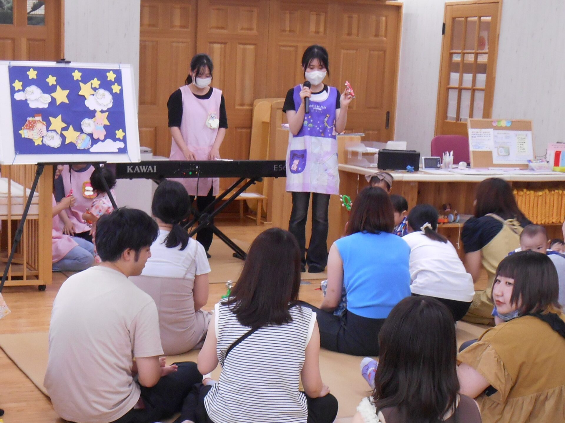 2週目は、七夕会本番!手遊び、パネルシアター、歌遊びなど、七夕やお星さまをテーマにした楽しいプログラムが盛りだくさんの学生が企画・運営を担当する七夕会の開催です。