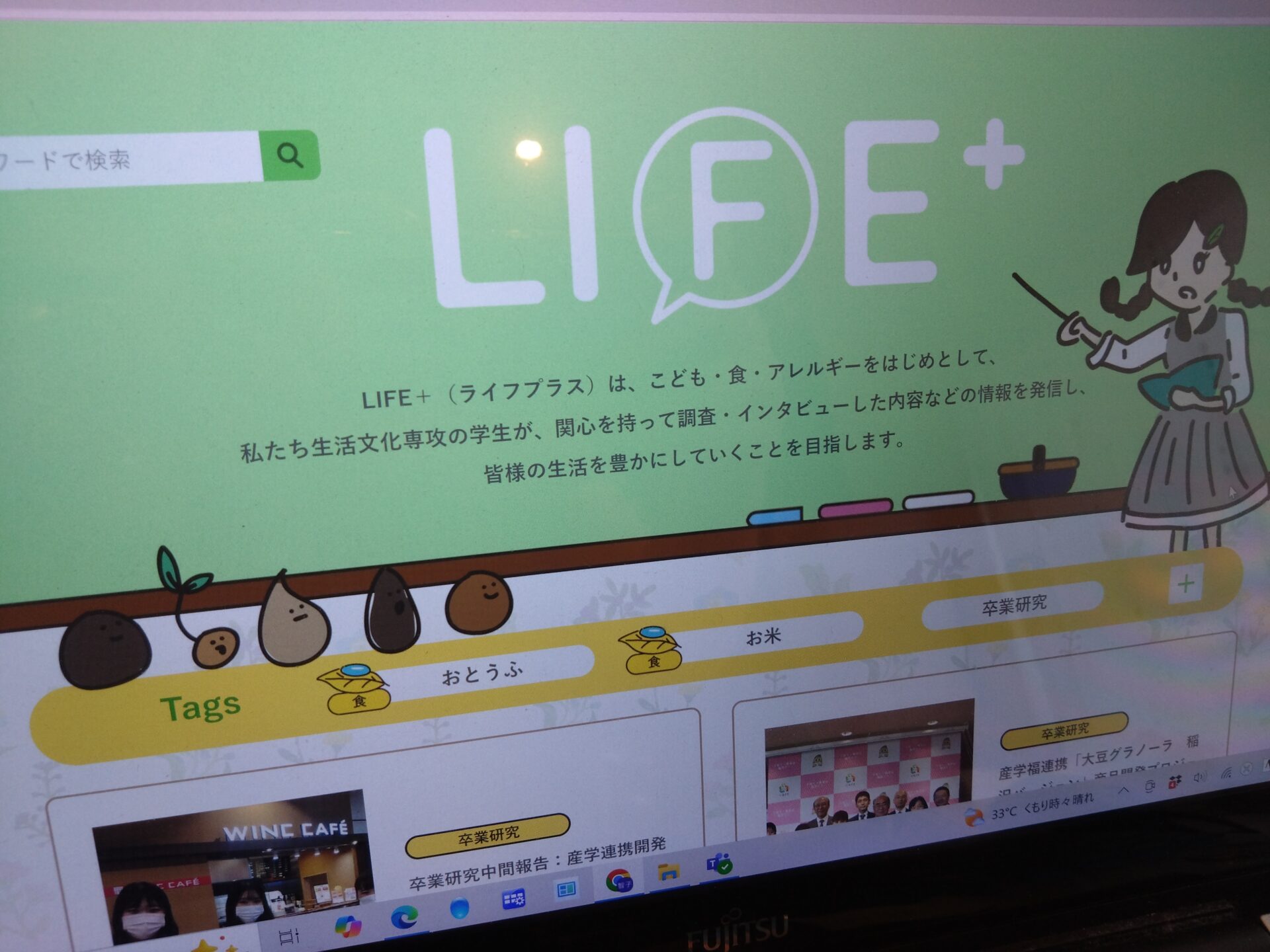 生活文化専攻の2年生は、ゼミに分かれて、卒業研究を1年間かけて行っています。1年間の学びと研究を卒業時にきちんと成果として世の中へ出していけるように取り組んでいます。前期の授業が終わったところで、生活文化専攻の学生が、関心を持って調査・インタビューした内容などの情報を発信している『LIFE+(ライフプラス)』のサイトで、これまで取り組んだ内容を記事にまとめました。課題の整理や今後の方向性を見直す機会となりました。