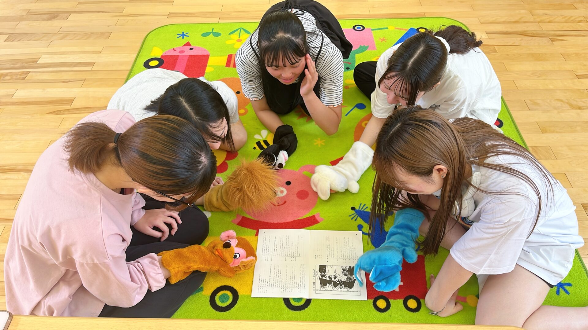 パペットを使った人形劇の練習では、役割分担をして声を変えたり動きを付けたりと工夫を凝らしながら発表まで行いました。先輩・後輩関係なくチームで協力し合う姿が印象的でした。
