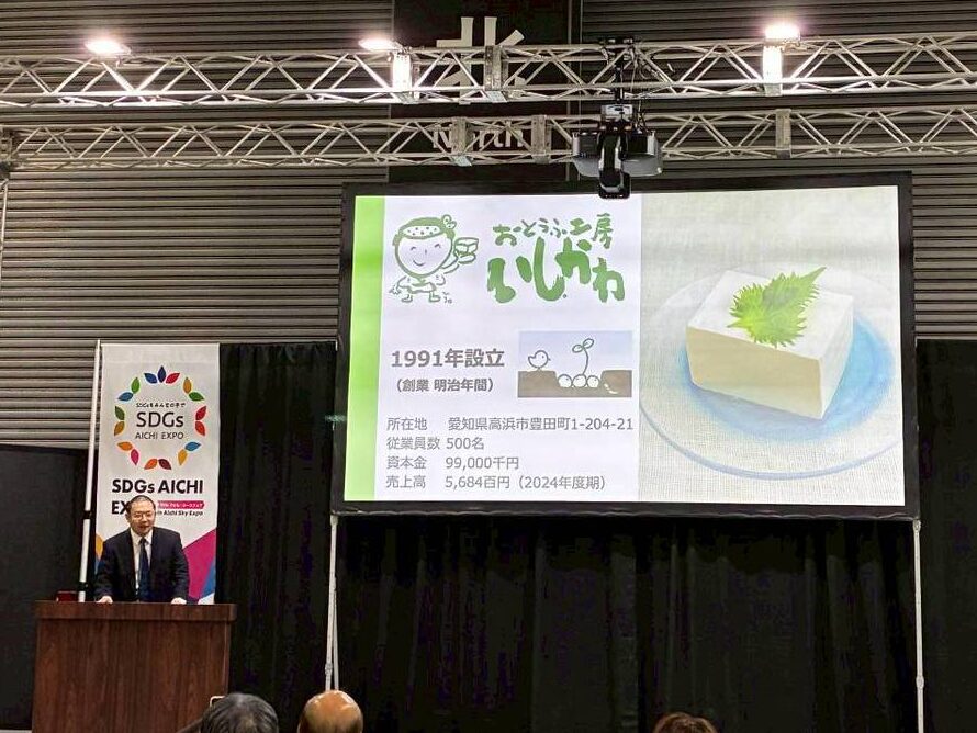 さらに、愛知文教大学の小川先生からは、人文学の視点から見たSDGsと大豆・豆腐の魅力、小牧の施設での共同開発の様子が紹介されました。