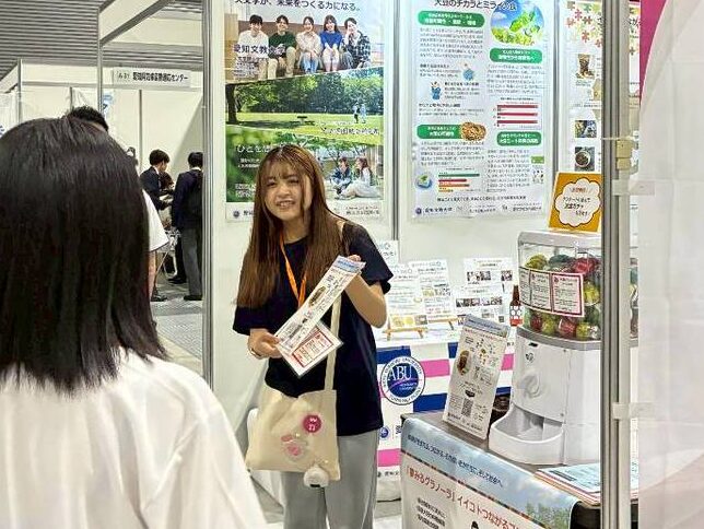 10月3日には、生活文化専攻の学生が司会進行を務め、ステージイベント「イイコトつながる!大豆グラノーラで未来をつくる」を開催。食のチカラで健康・環境・福祉・地域をつなぐ新しい“イイコト”の形を提案しました。