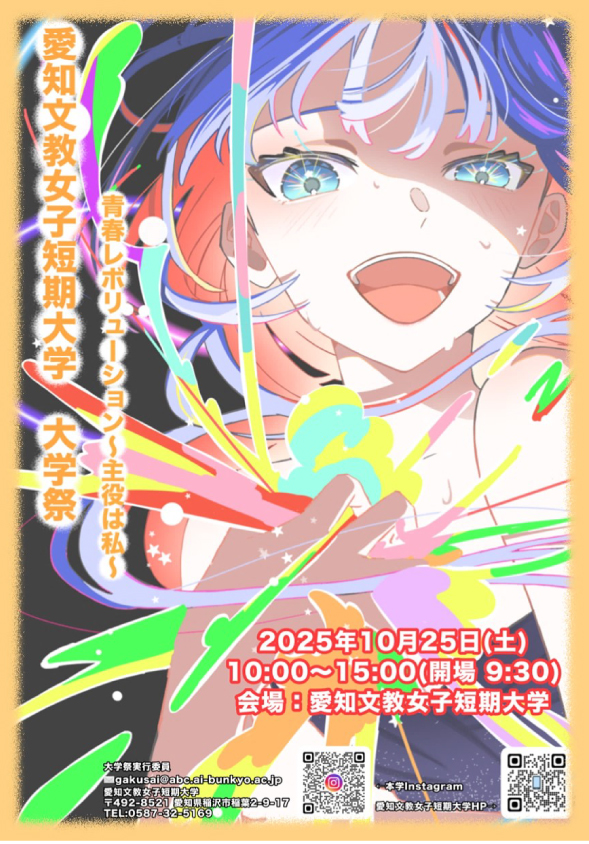 10月25日(土)、愛知文教女子短期大学の大学祭を開催しました!当日は300名を超える皆さまにお越しいただき、笑顔いっぱいの1日となりました。ご来場いただいた皆さま、本当にありがとうございました。