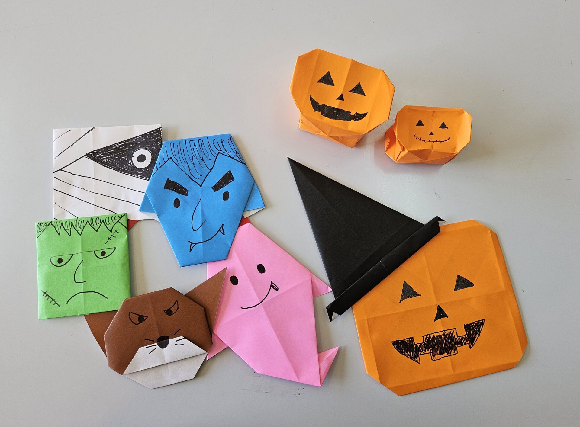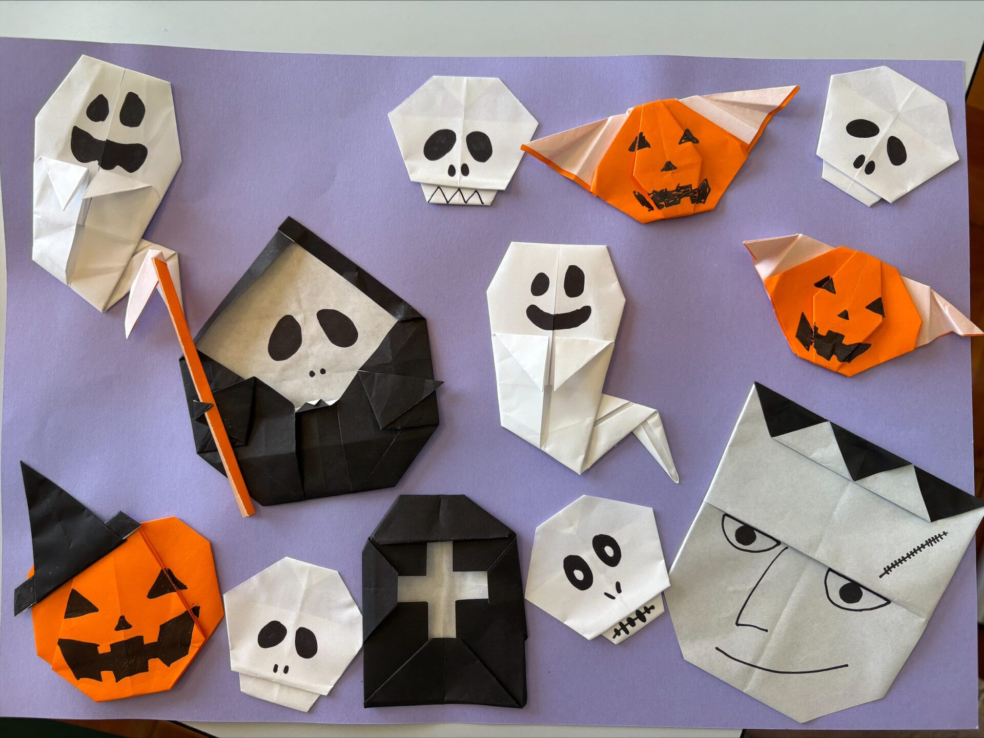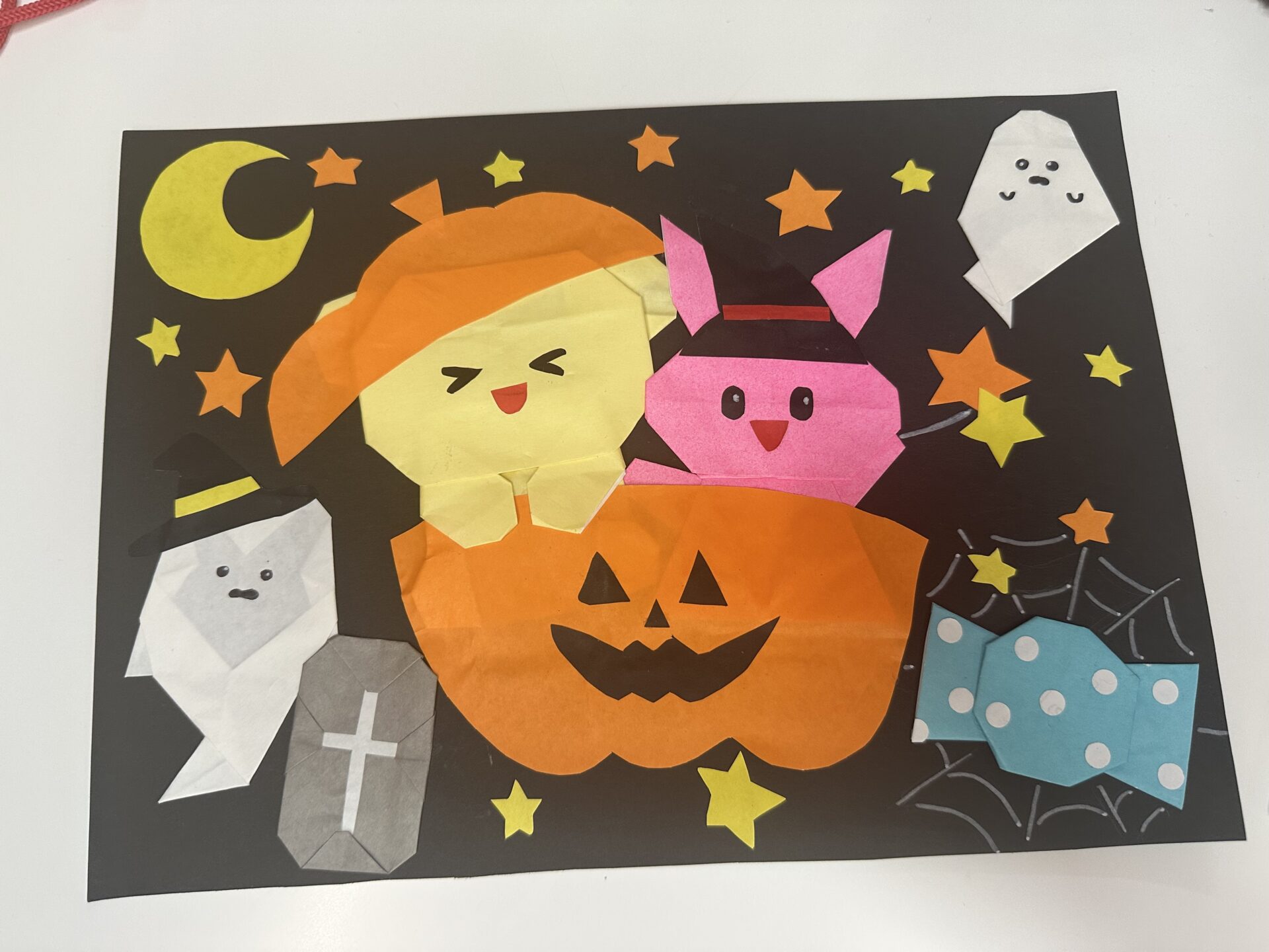 訪問に向けて、学生たちは折り紙でハロウィンの飾りを手作りし、おみやげとして持参しました。