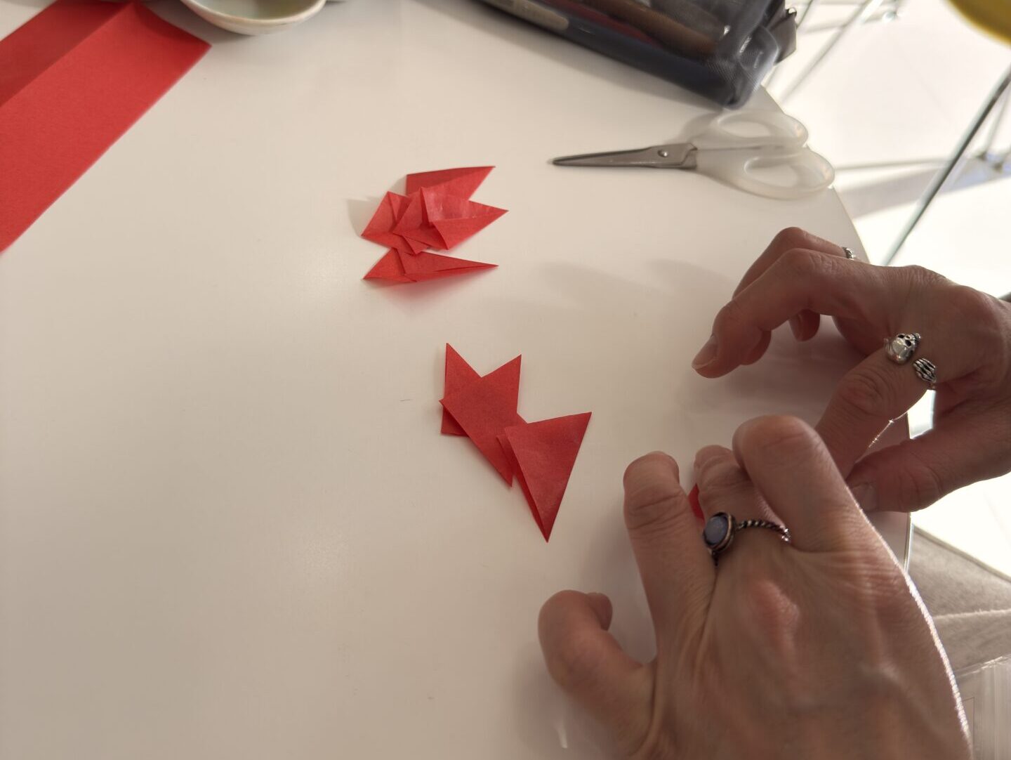 講義後は造形体験として、トランスペーパーを使った★づくりに挑戦。みなさん集中して取り組まれ、個性あふれる作品が完成しました。