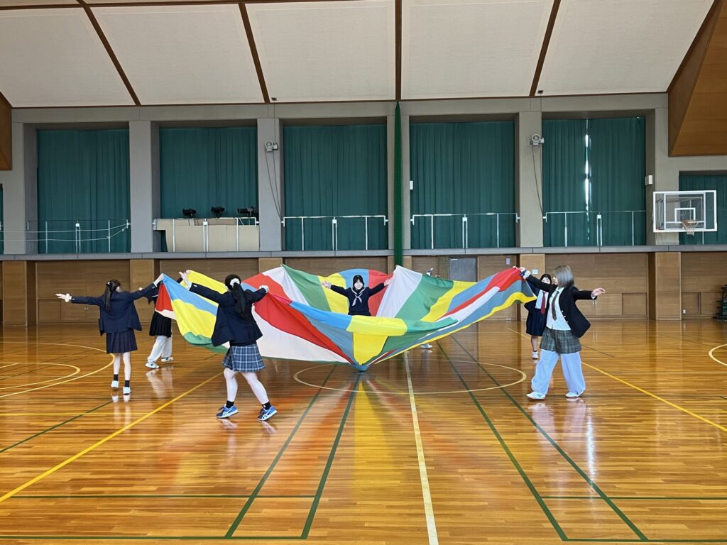 今年も、色とりどりの大きな布がふわりと舞い上がる「パラバルーン」の季節がやってきました。協力・リズム・楽しさが自然と生まれるこの活動は、学生たちの表情を一気に明るくしてくれます。パラバルーンは、動き方や声かけ一つで子どもの反応が大きく変わるため、指導法を考える良い学びの機会にもなっています。領域「健康」の授業では、学生たちが自分たちで構成を考え、実際に発表まで行いました。まさに、本学ならではの実践的な学びがつまった時間となりました。