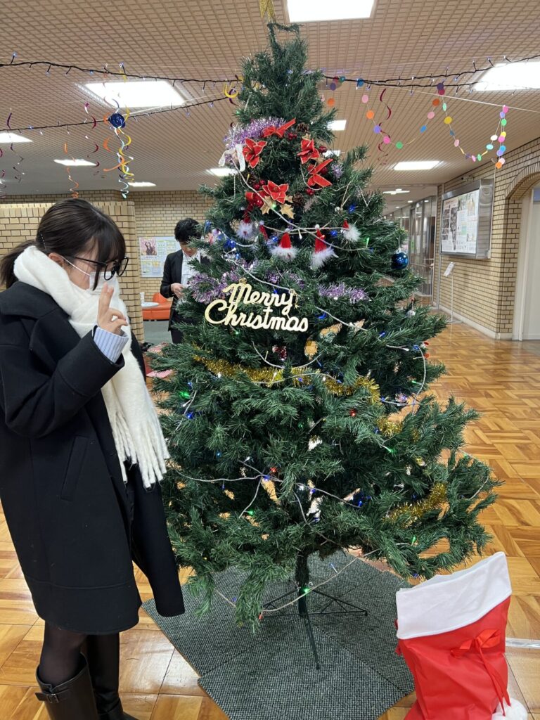 今年の飾り付けは、学生さんや教職員の皆さんに加えて、おやこ園のお母さんや子どもさんたちも協力してくれました。心を込めて飾り付けたツリーは、見ているだけで温かい気持ちになります。とても素敵なクリスマスになりそうです.