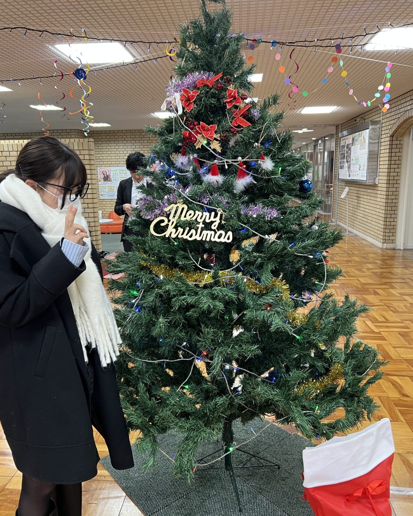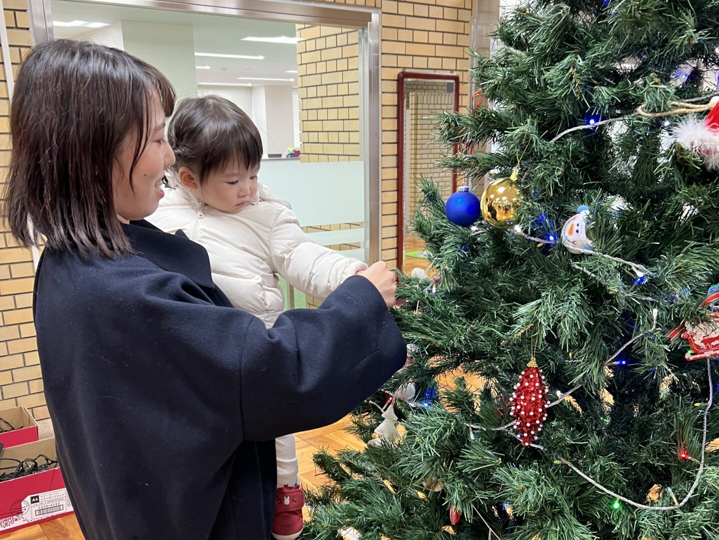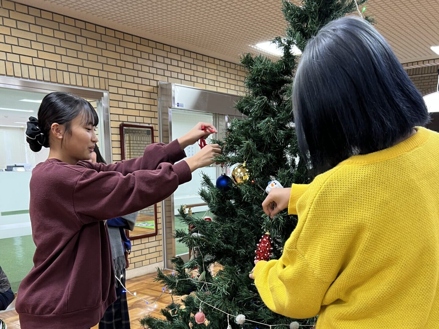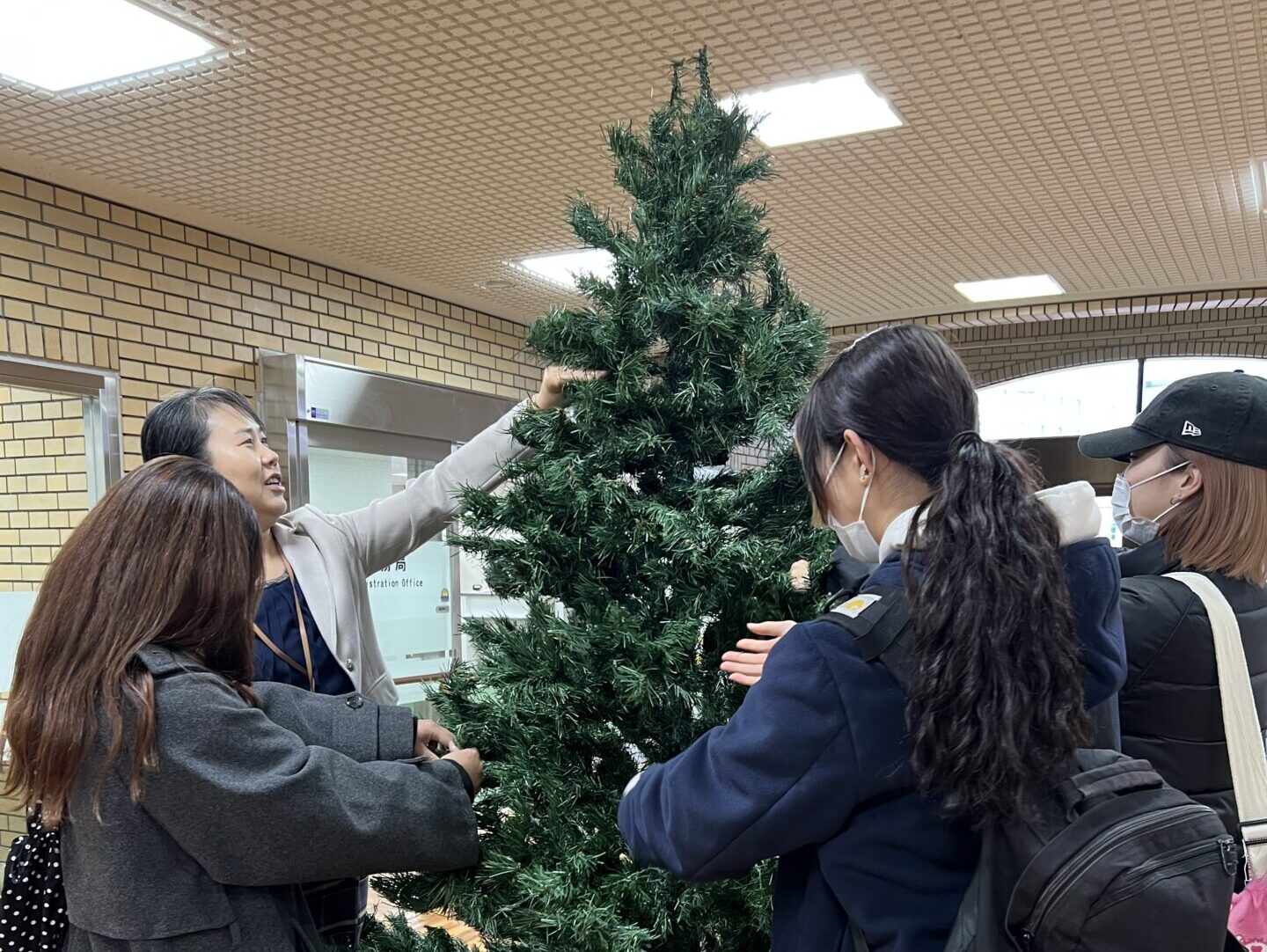 今年の飾り付けは、学生さんや教職員の皆さんに加えて、おやこ園のお母さんや子どもさんたちも協力してくれました。心を込めて飾り付けたツリーは、見ているだけで温かい気持ちになります。とても素敵なクリスマスになりそうです.