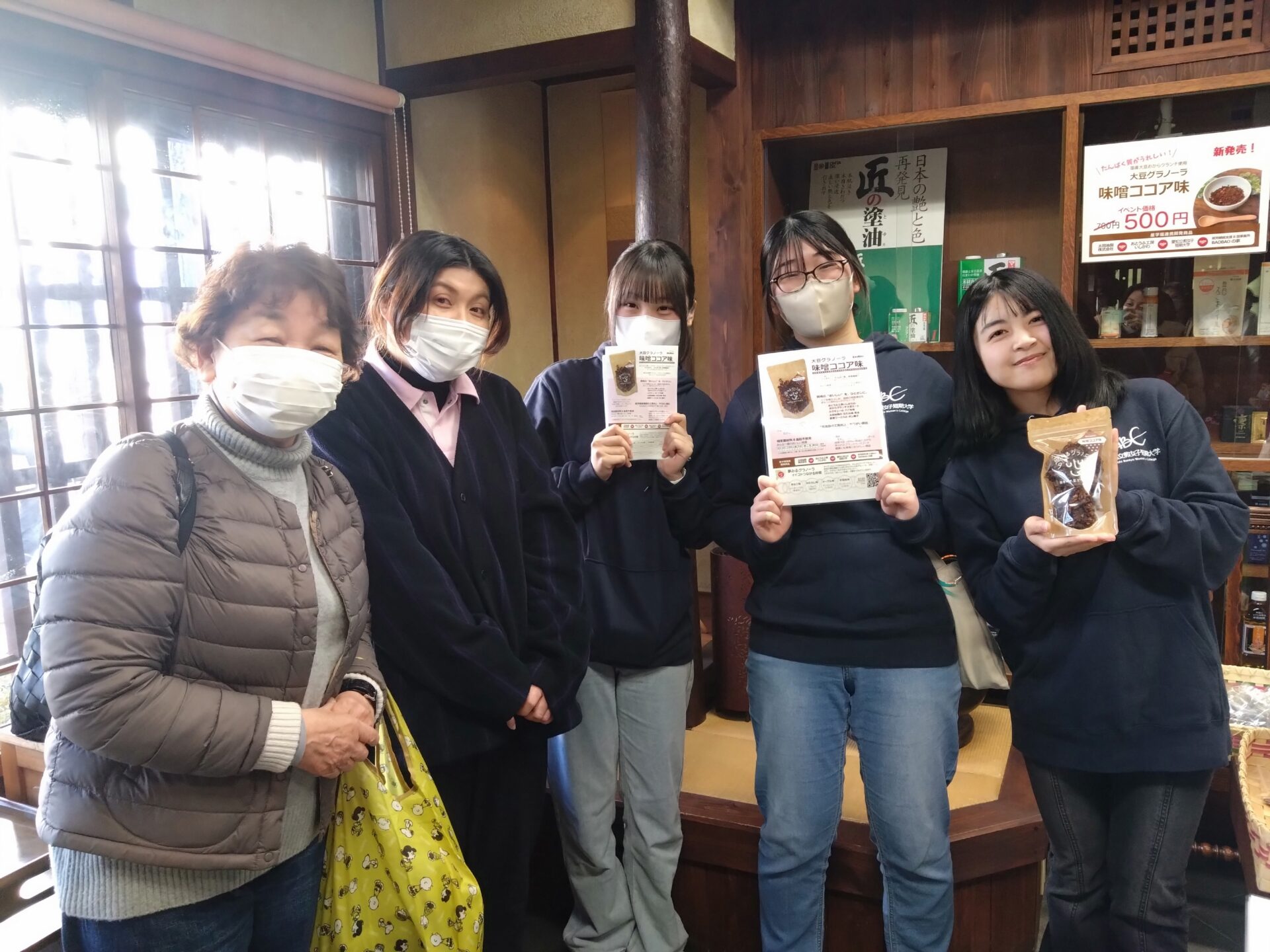 生活文化専攻1年生が、太田油脂株式会社で開催された「新春大感謝祭」に参加し、生活文化専攻1年生が、おとうふ工房いしかわ、太田油脂、BAOBAOの家と連携して開発したオリジナル商品『大豆グラノーラ 味噌ココア味』の初めての試食販売を行ってきました。