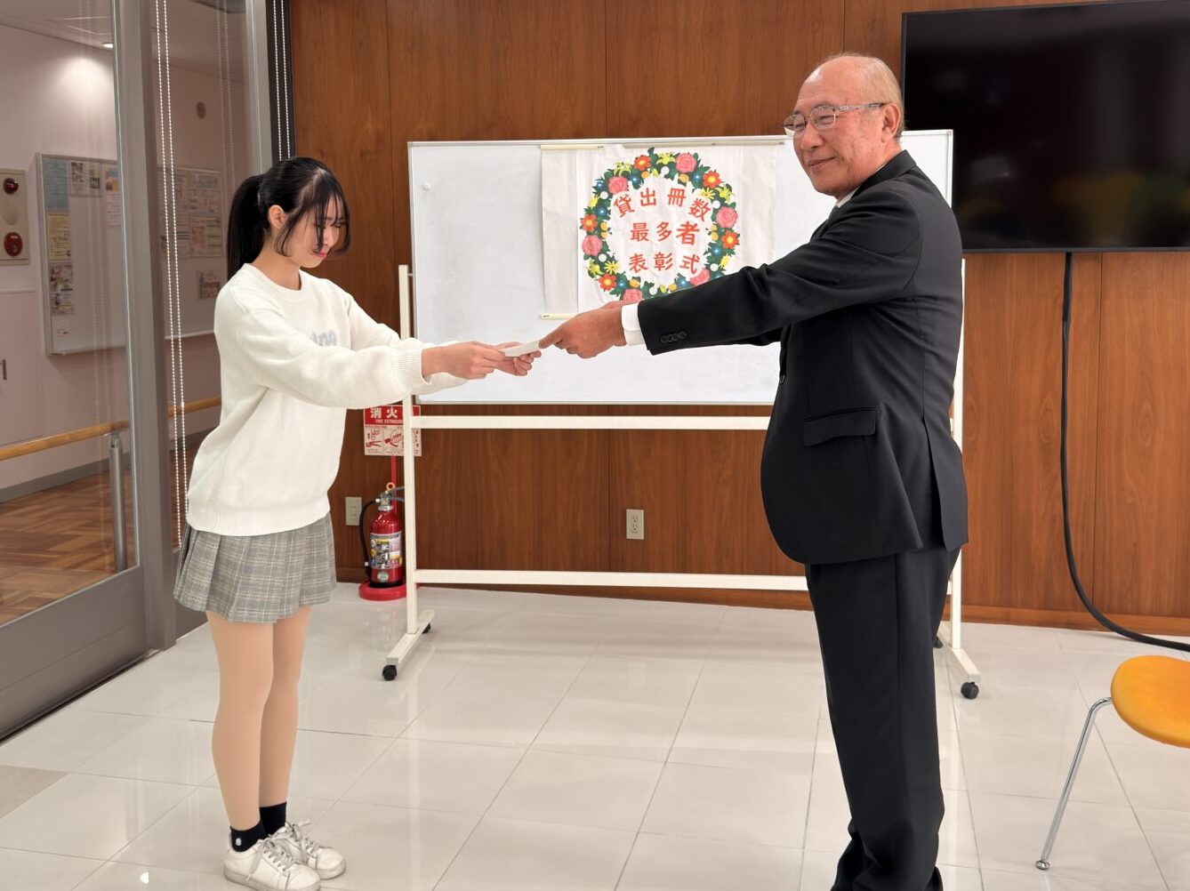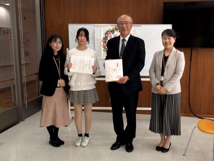 先日、「最多貸出学長表彰式」を実施し、学長より表彰状を授与するとともに、クオカードと記念品をお渡ししました。